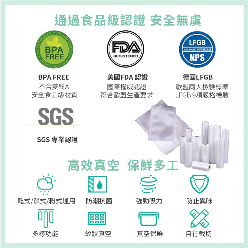 注意事項:食品衛生用品耗材賣場,拆封後恕不退貨,尺寸規格請依照真空封口機實際抽氣封口範圍搭配使用。