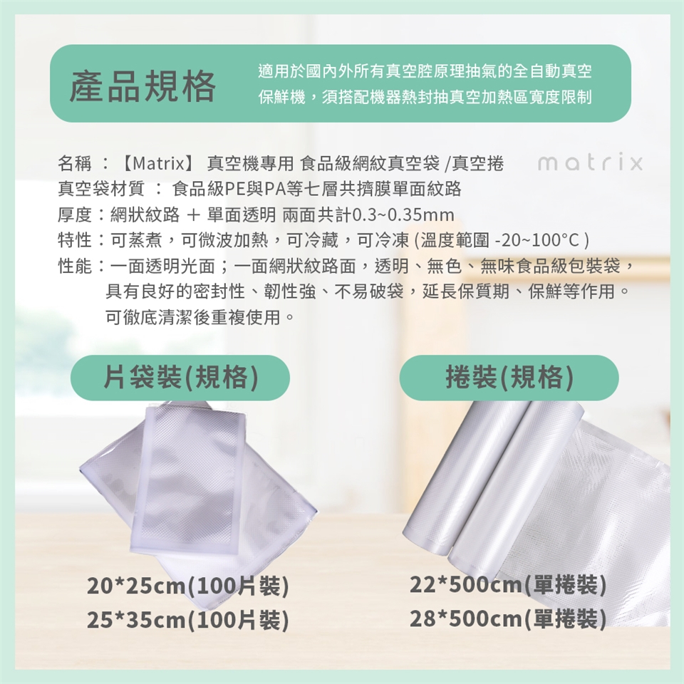 Matrix 真空機專用食品級網紋真空袋/真空捲袋