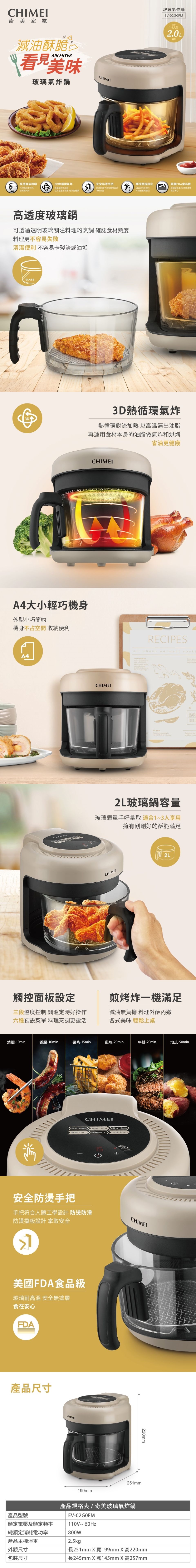 奇美 3段式調溫玻璃氣炸鍋 焦糖奶茶色 EV-02G0FM