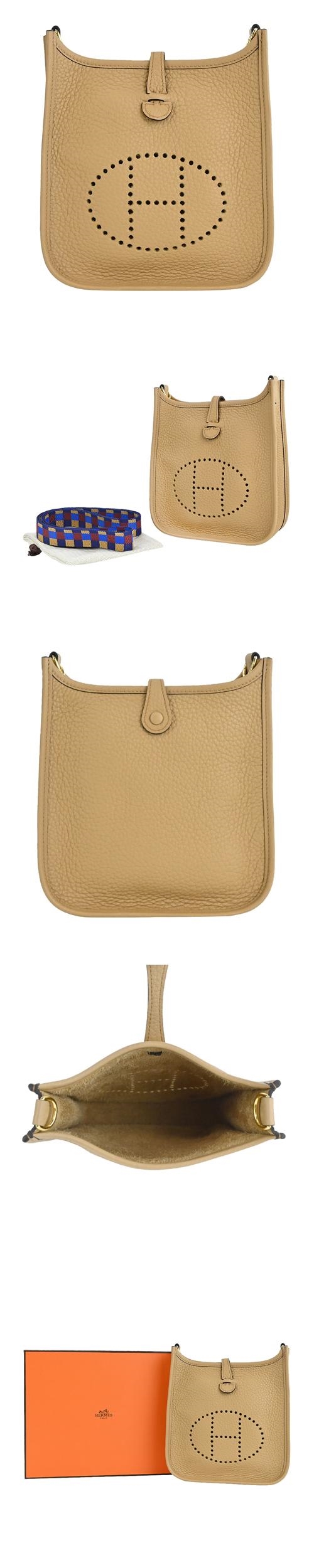 Hermes 愛馬仕Evelyne 16cm T/C H LOGO迷你牛皮編織款背帶斜/肩背包(AH奶茶金/U刻/金釦)