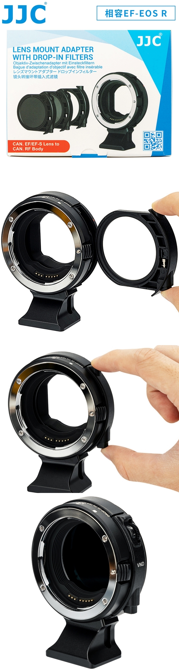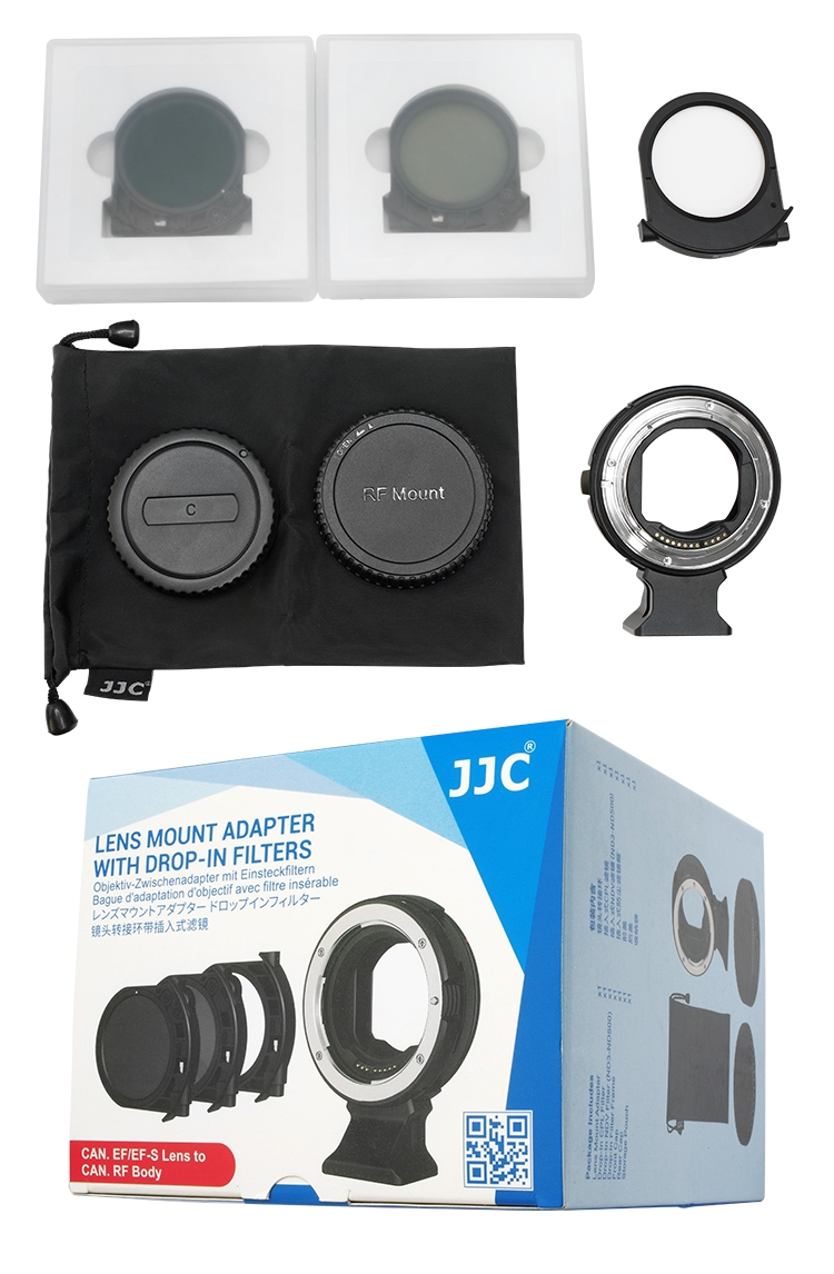 ●【品名】JJC佳能Canon副廠插入式濾鏡全電子卡口鏡頭控制環轉接環CA-EF_RF_K(可自動對焦;含CPL偏光鏡.VND減光鏡.UV濾鏡;相容原廠EF-EOS R)Lens Mount Adapter with Drop-In Filters