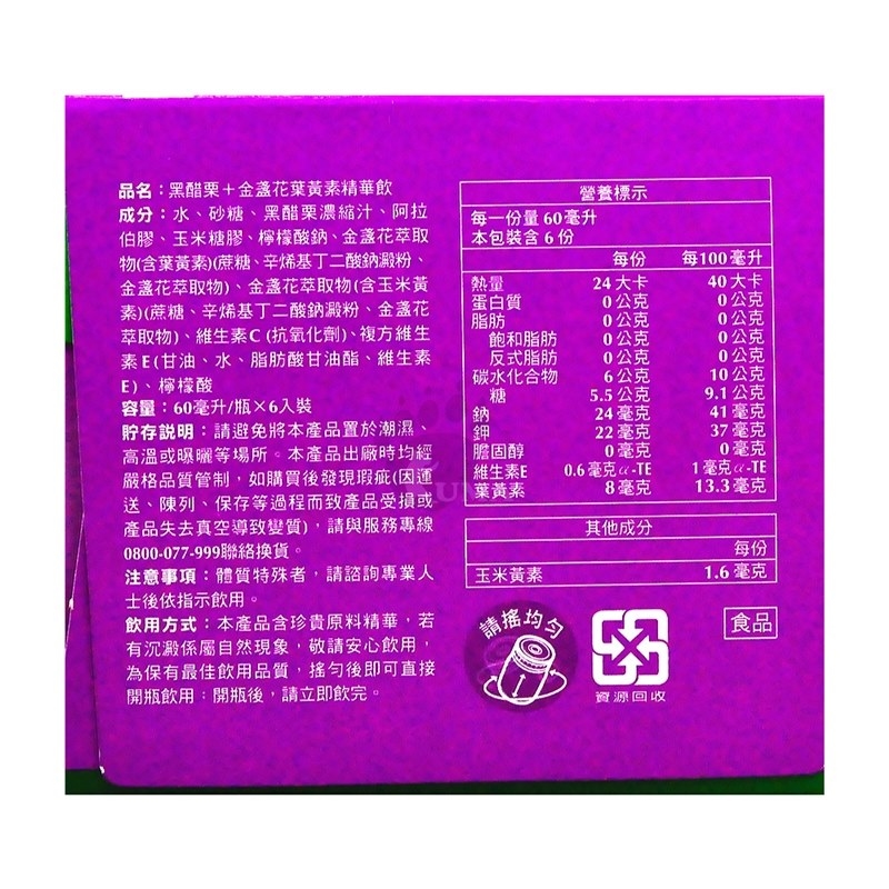 *中文品名:黑醋栗+金盞花葉黃素精華飲