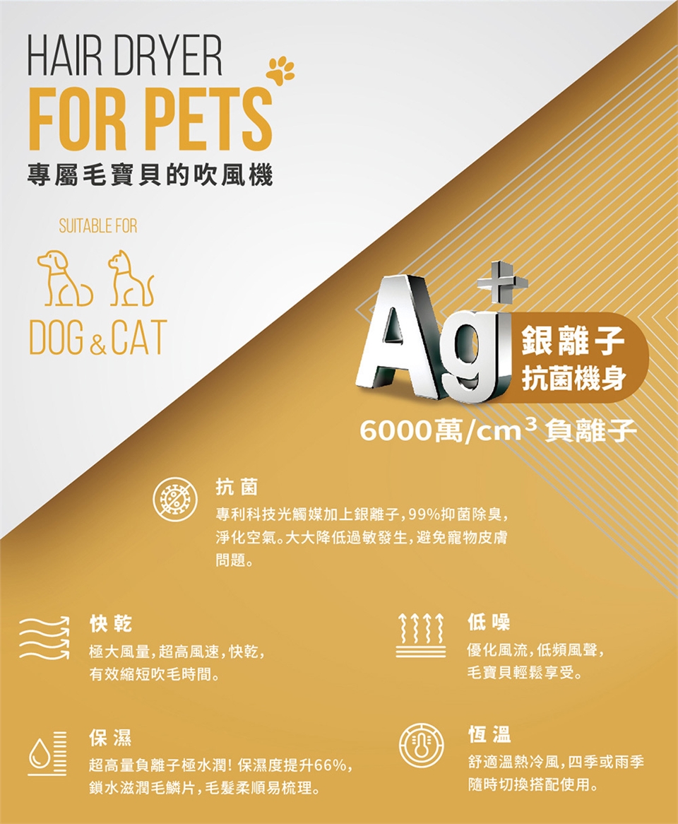 達新牌 水潤負離子 光觸媒抗菌寵物吹風機(附寵物梳) TS-6690