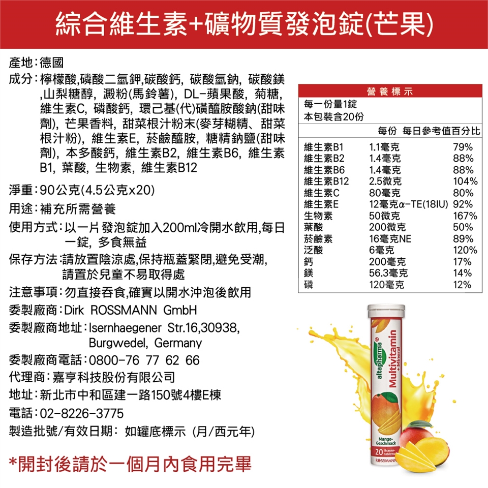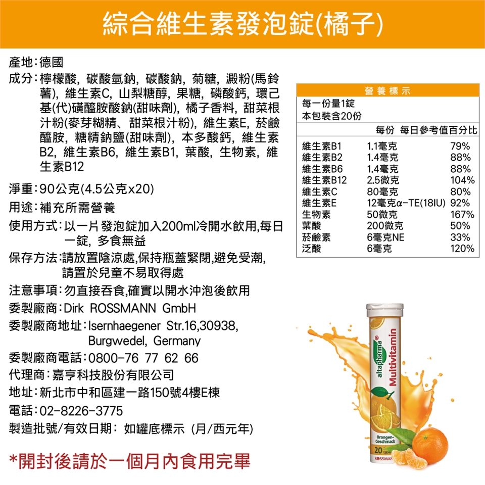 【德國Altapharma】德國原裝 基礎機能保養發泡錠12入240錠(綜合維他命/維他命C/鎂/鈣)