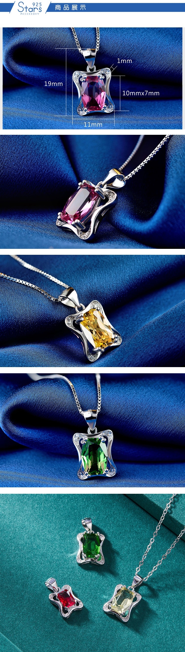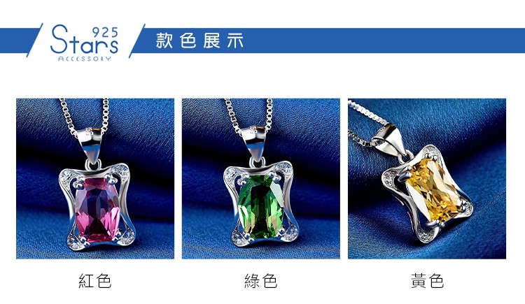 【925 STARS】純銀925微鑲美鑽貴氣翠彩石方形吊墜 造型吊墜 美鑽吊墜 (3款任選)