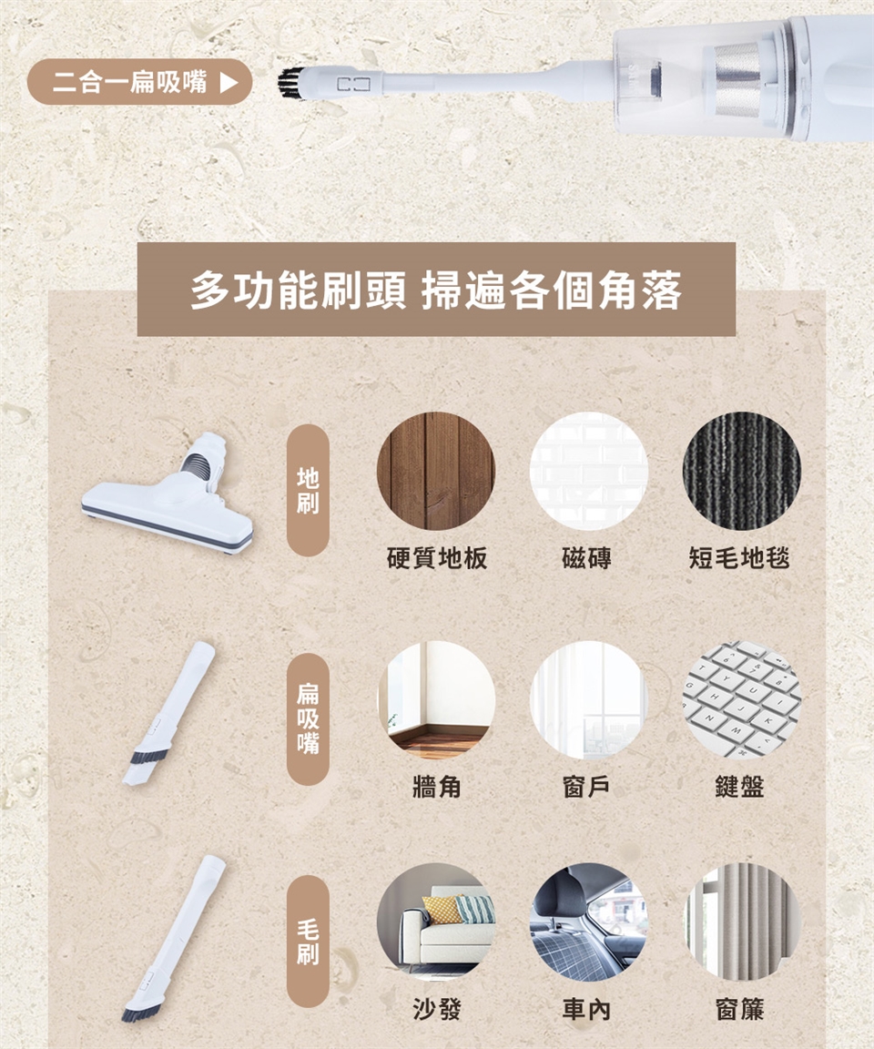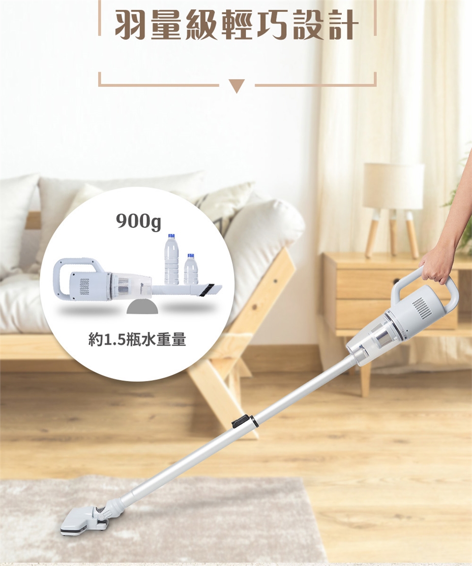 ◆2in1手持/直立兩用,大角度省力握把,靈活使用隨處吸。