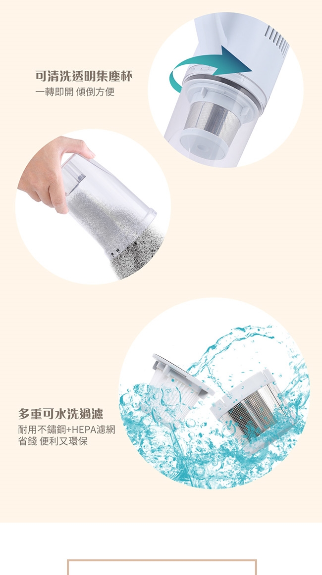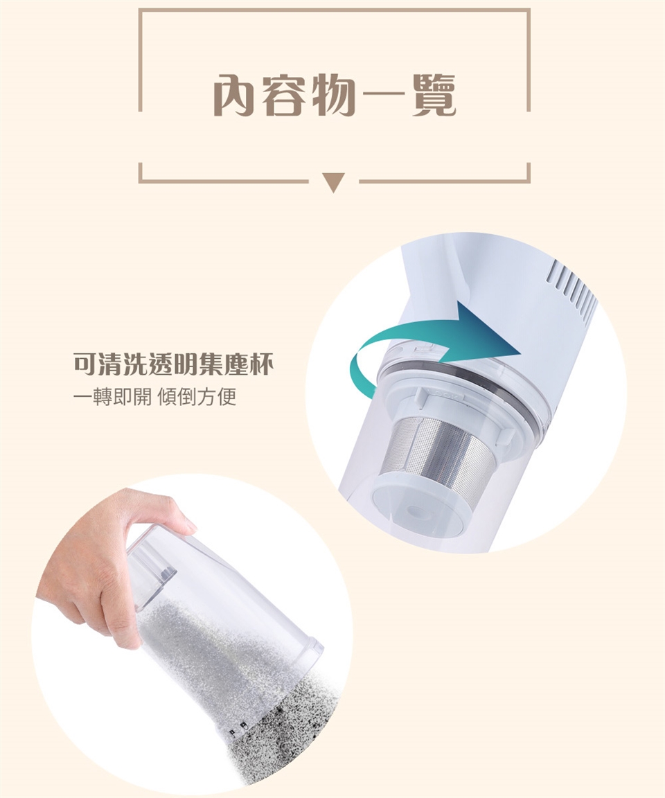 ◆0.5L大容量透明集塵盒,減少倒塵頻率。