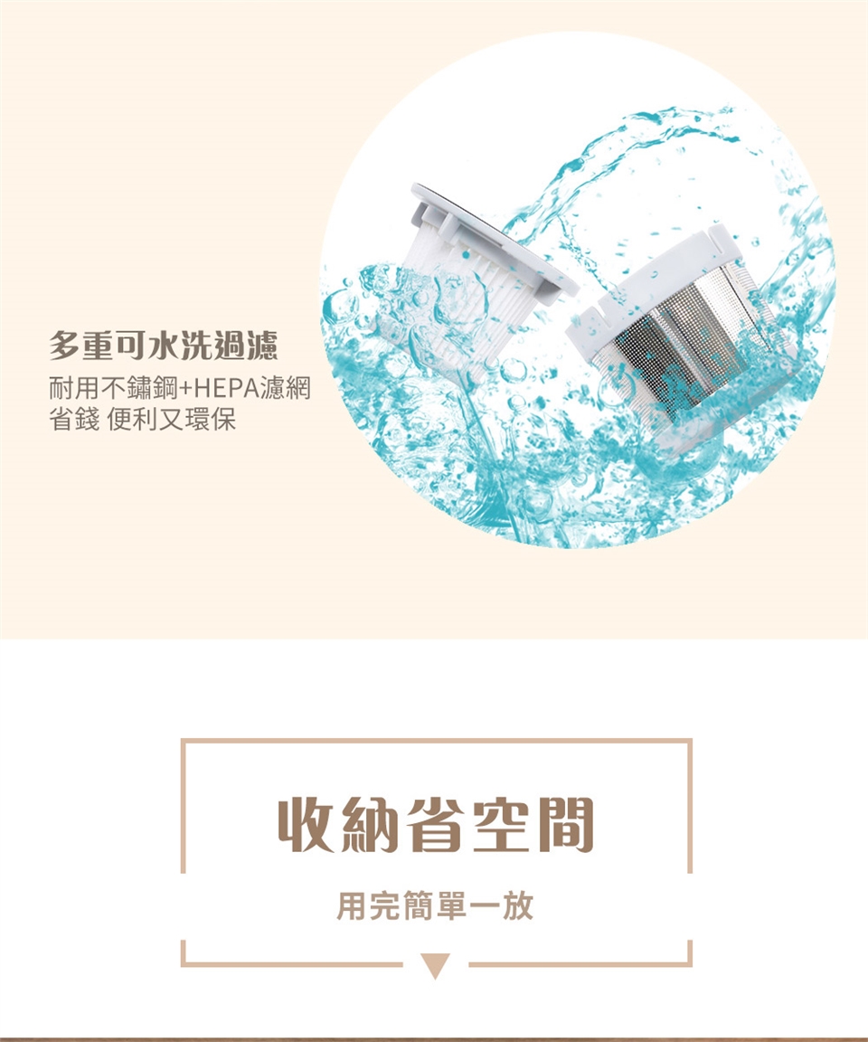 ◆耐用不鏽鋼+HEPA濾網多重過濾,皆可水洗更環保。