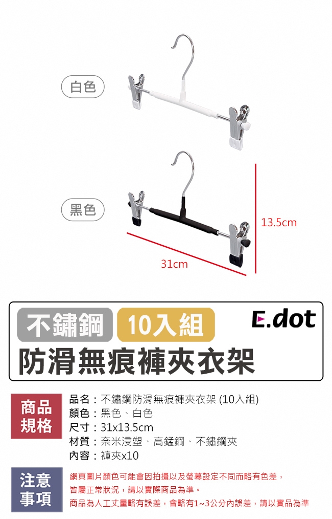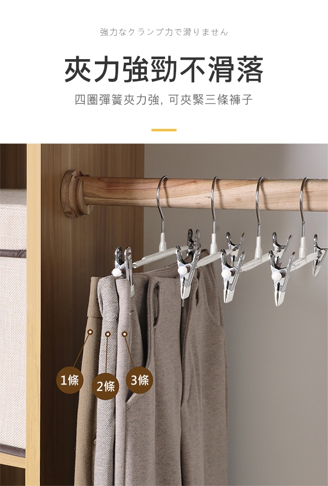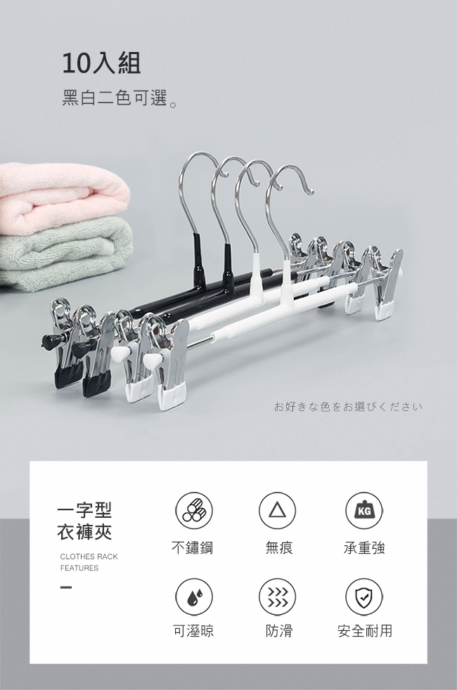 ◆ 商品名稱:不鏽鋼防滑無痕褲夾衣架(10入組)