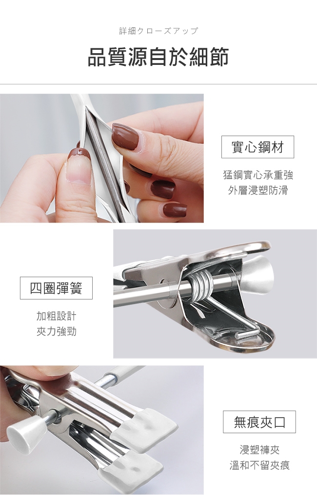 ◆ 材質:奈米浸塑、高錳鋼、不鏽鋼夾