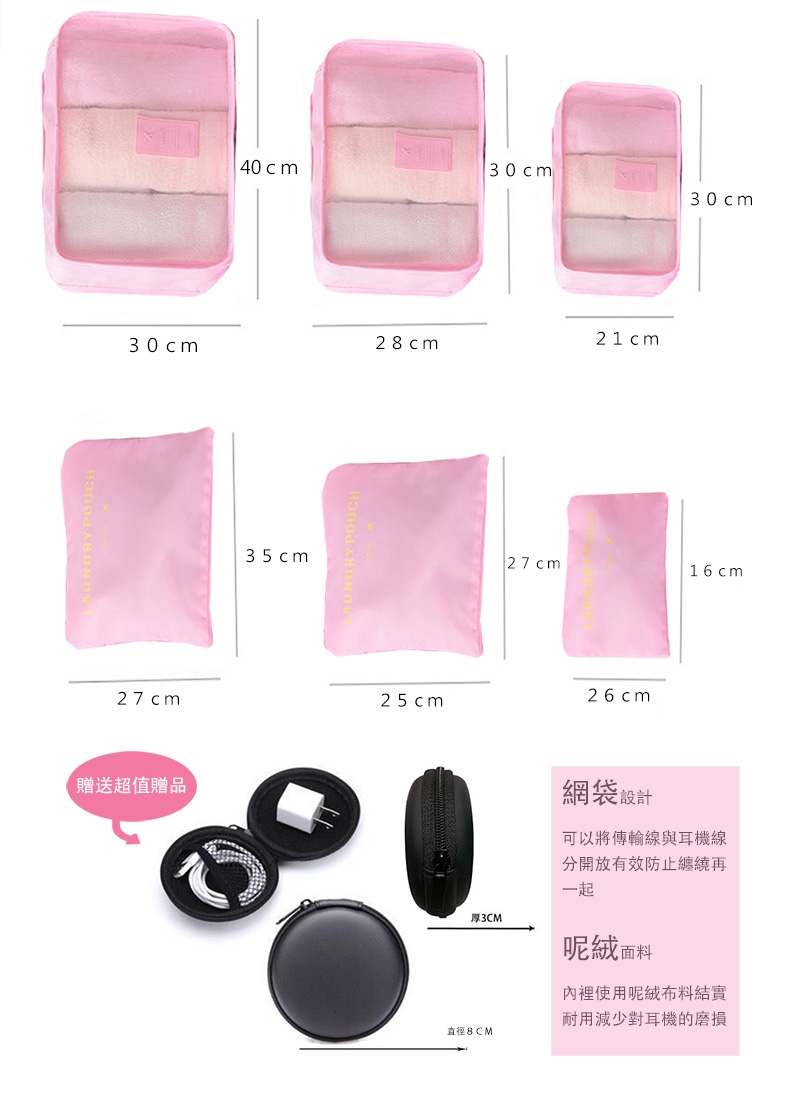 大平口收納袋35*27cm中收納袋27*25cm小收納袋26*16cm耳機包直徑8*3 cm