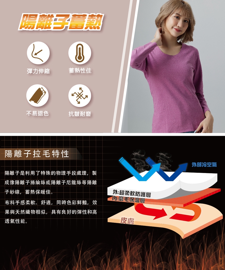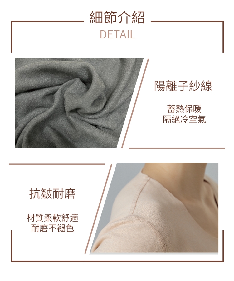 商品內容:陽離子無痕蓄熱圓領長袖內衣