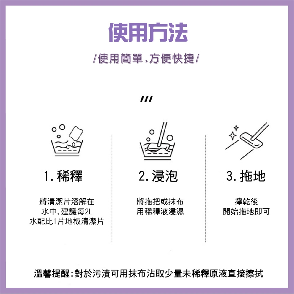 1.稀釋:將清潔片溶解在水中,建議每2L水配比1片地板清潔片