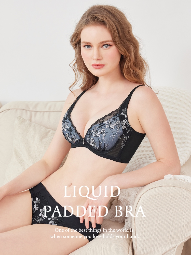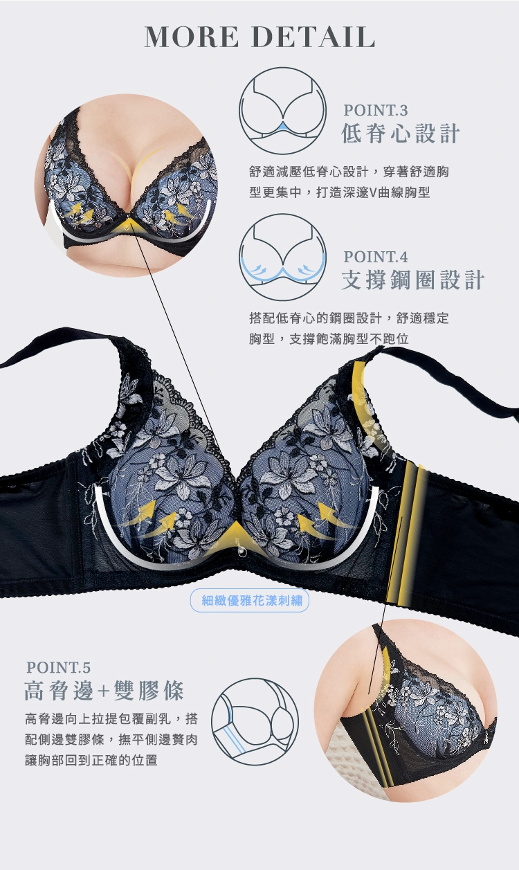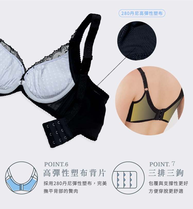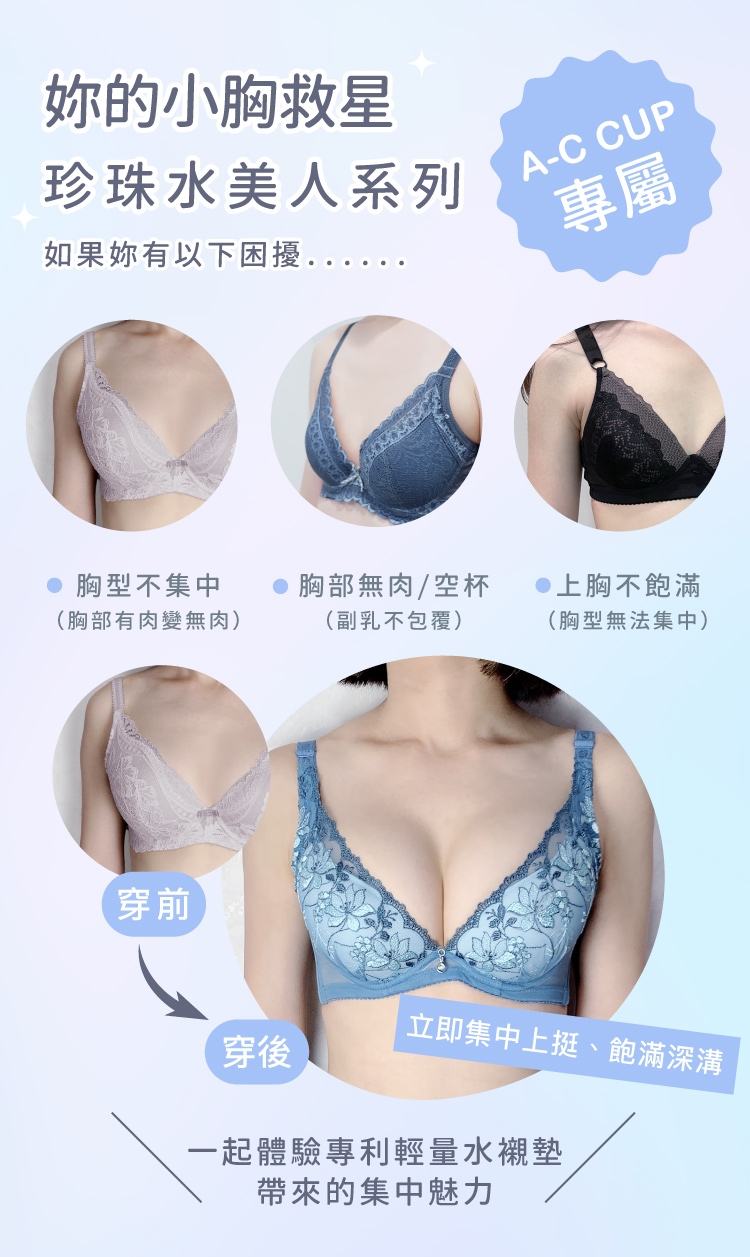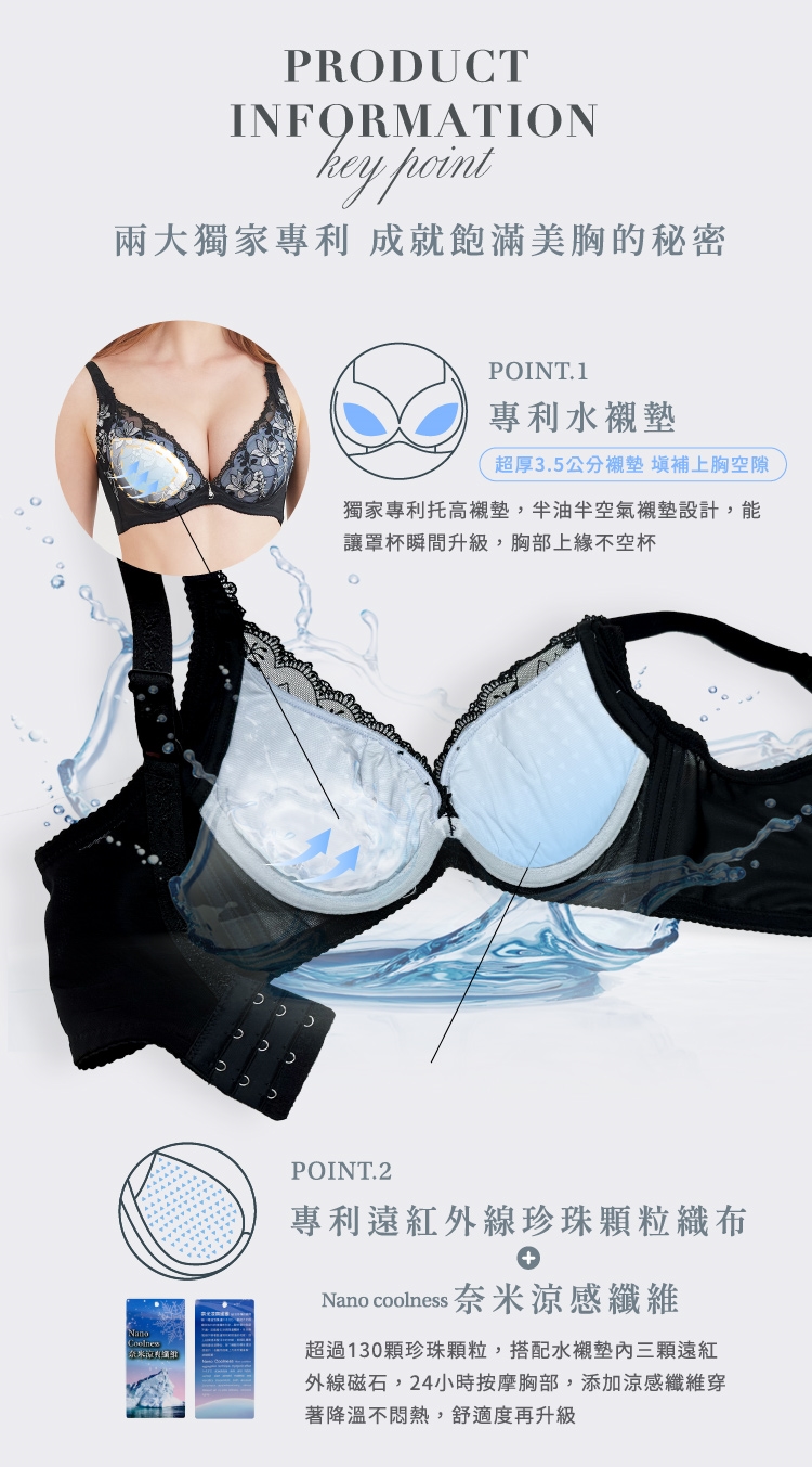 【可蘭霓Clany】台灣製專利按摩顆粒珍珠水美人ABC罩杯集中包覆內衣 爆乳性感蕾絲小胸小奶涼感 低脊心V曲線 東森購物 低調黑 8026-63