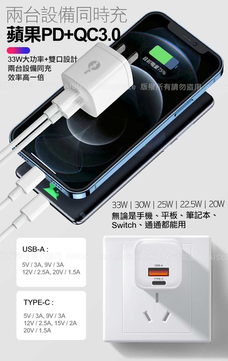 支援快充協議:PD3.0/QC3.0/PPS/AFC/FCP