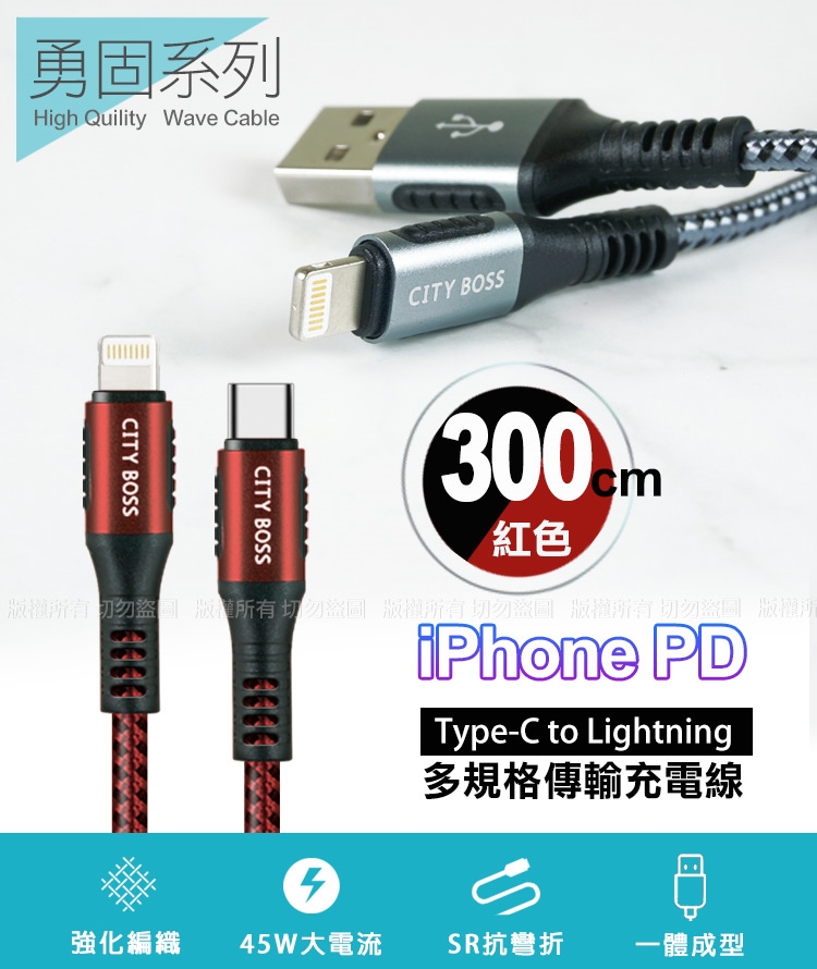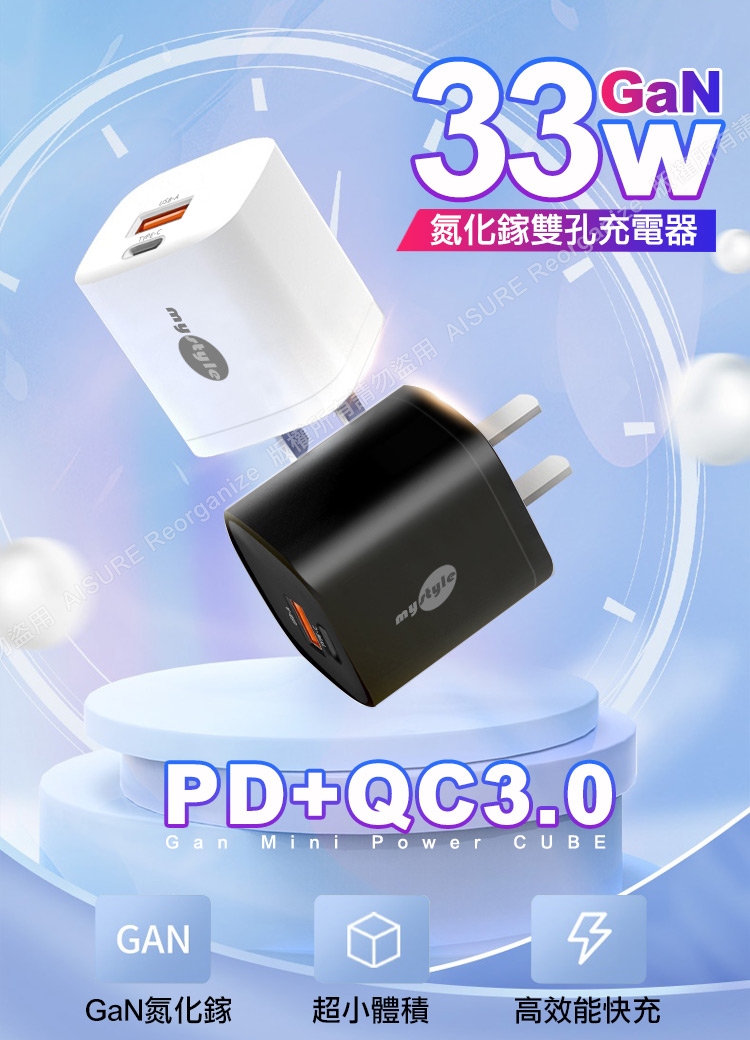 Mystyle 迷你Gan 33W氮化鎵PD+QC充電器黑+CityBoss Type-C to Lightning PD編織耐彎折快充線-紅色300cm iphone14 Pro系列快充
