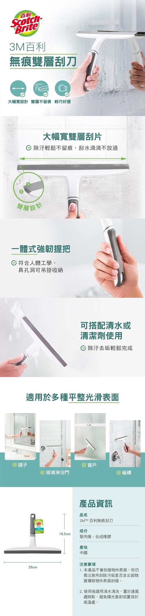 ★ 大幅寬雙層刮片 除汙刮水不留痕