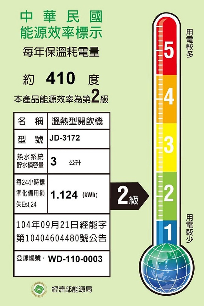 ◎經濟部能源局,能源效率標示,本產品能源效率為第2級