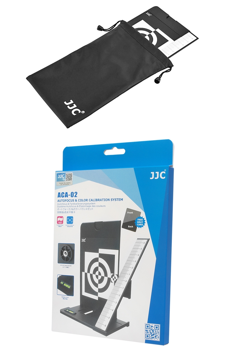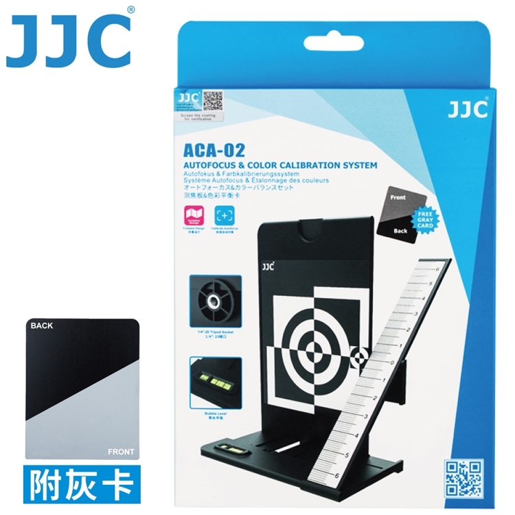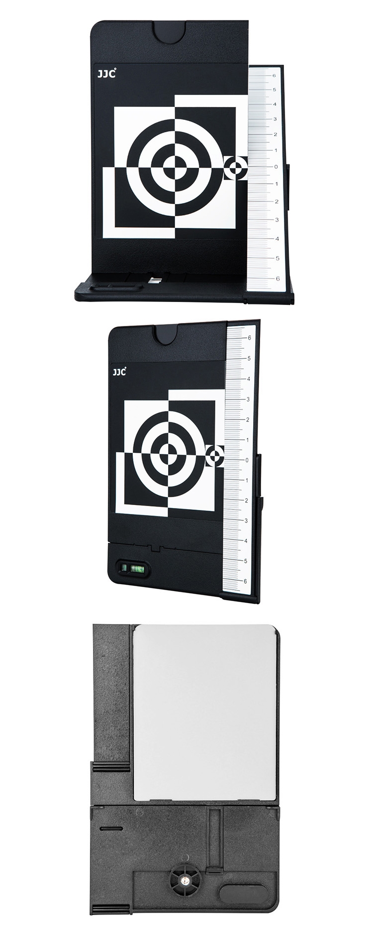 ●【品名】JJC手動自動對焦測焦移焦用校正工具兼校正白平衡測光板組ACA-02(含黑卡/18%灰卡;附水平儀和1/4吋螺孔)manual auto focus calibration兼校色卡