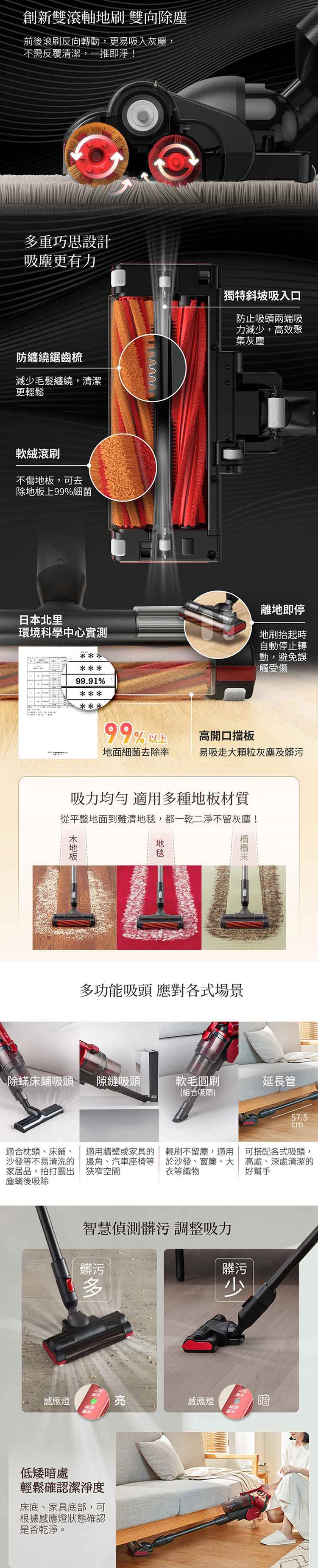 ◆適用多種地板材質,平整地面到難清地毯,都乾淨不留塵!