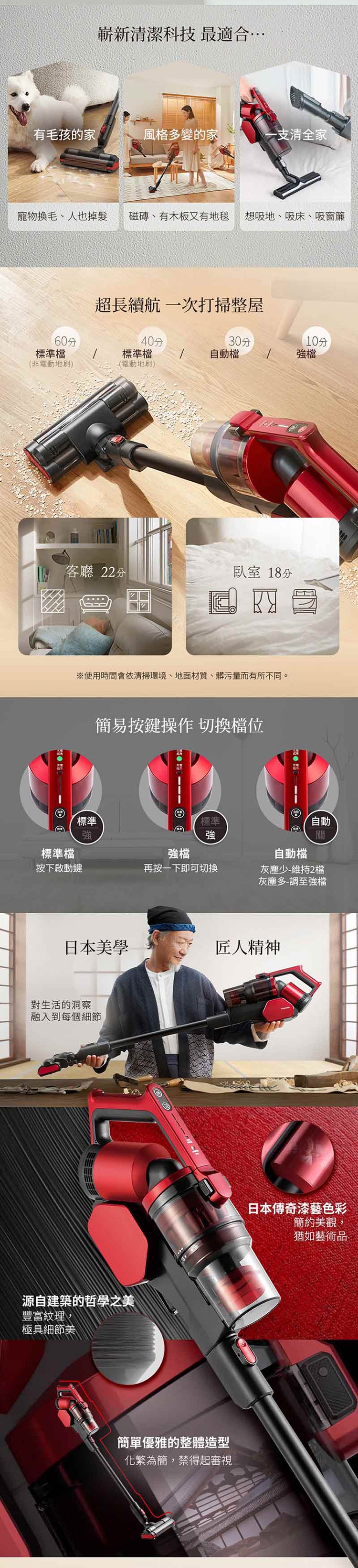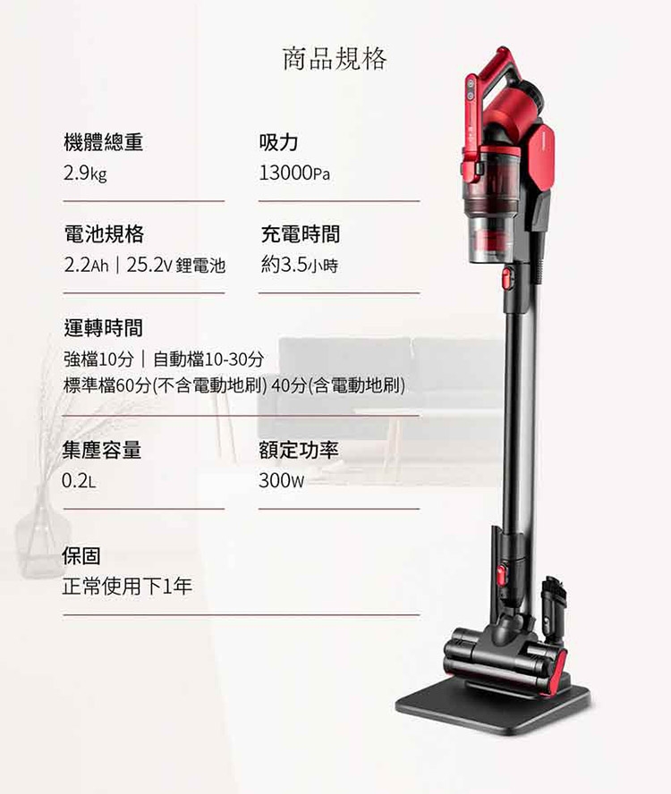 ◆最長60min續航,可一次打掃整屋。