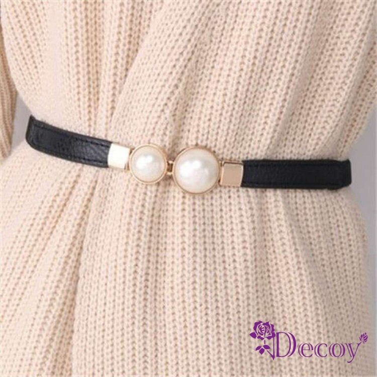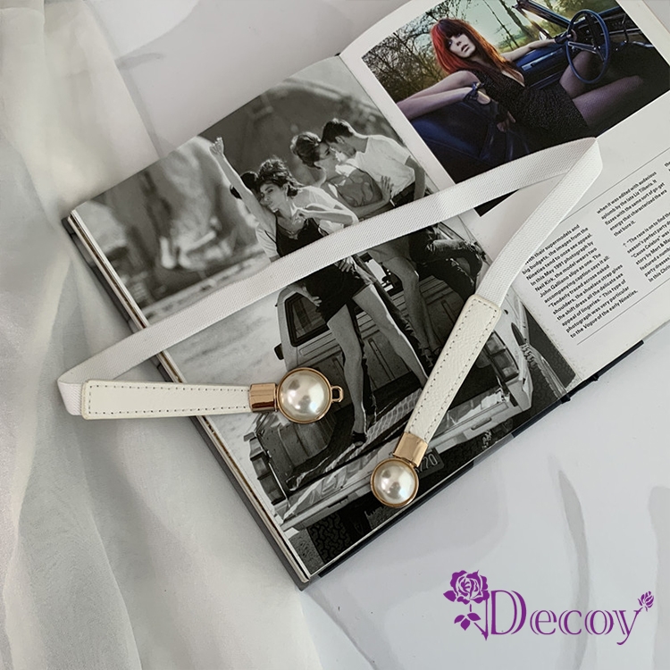 迷人珍珠金屬對扣,細皮帶設計百搭各種身型,