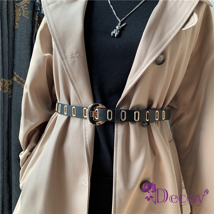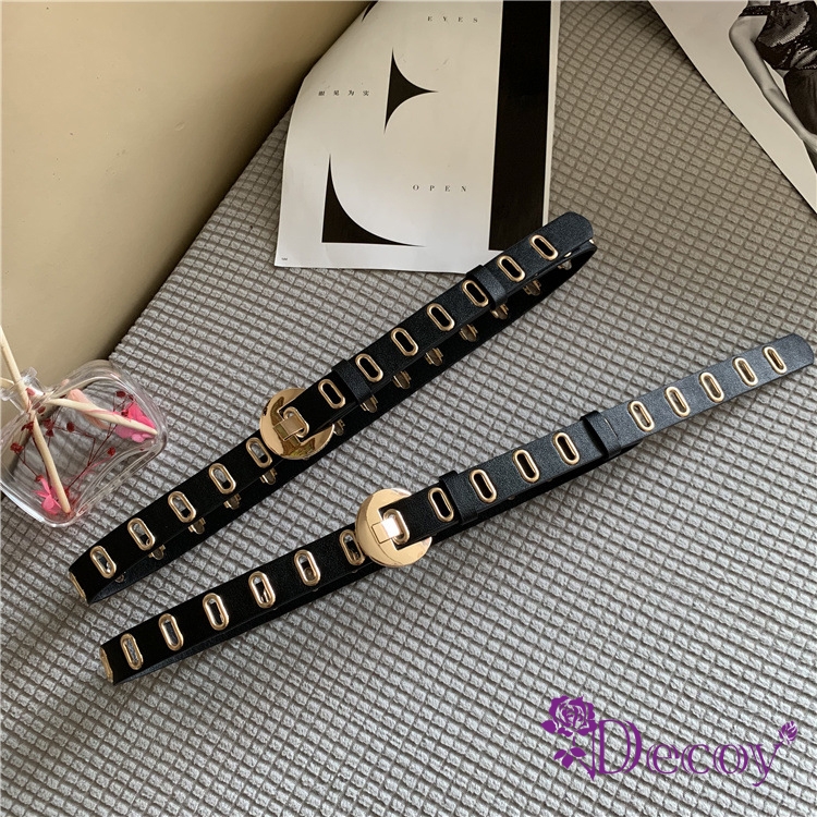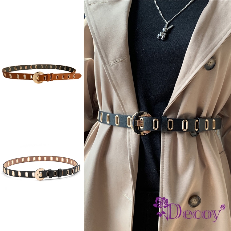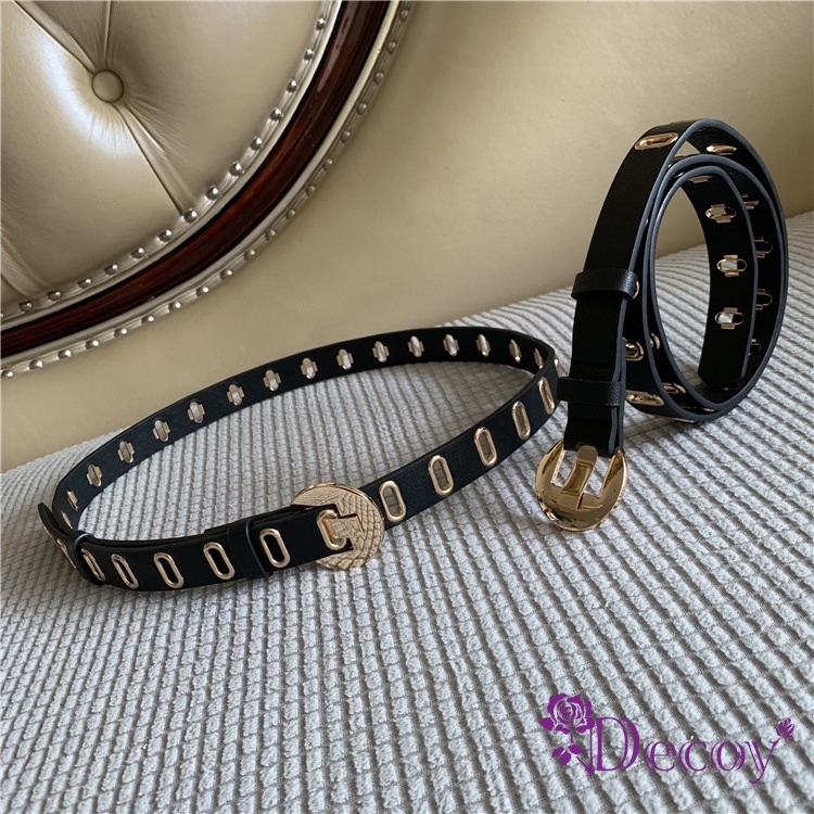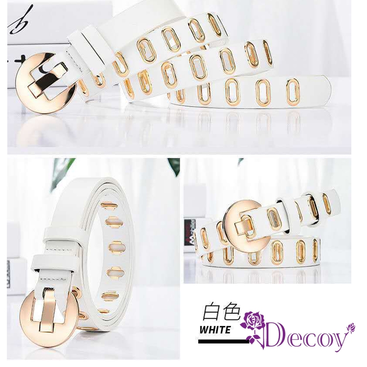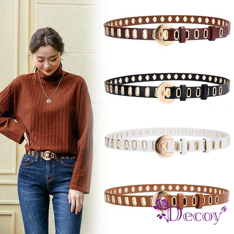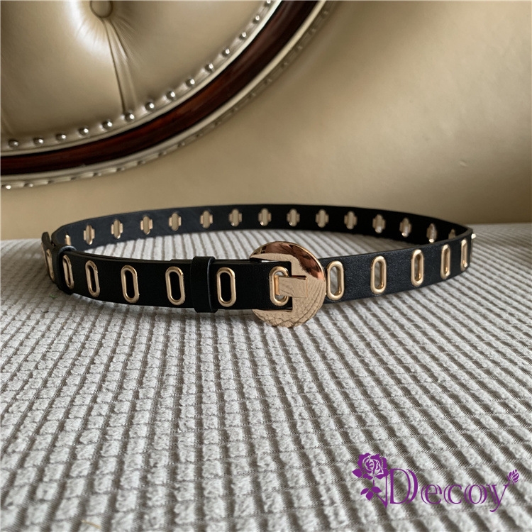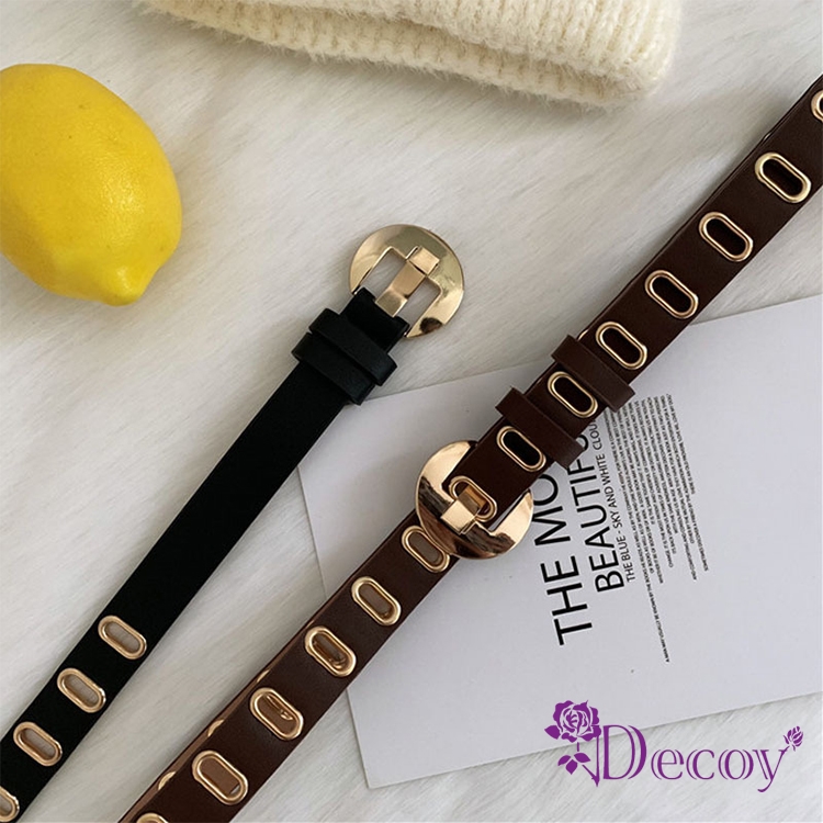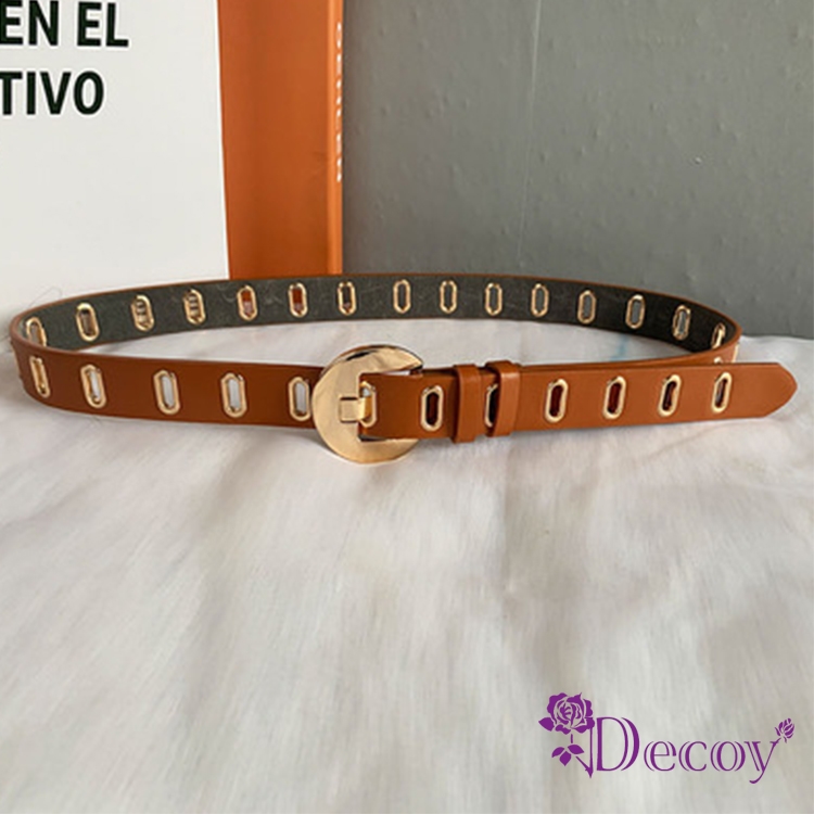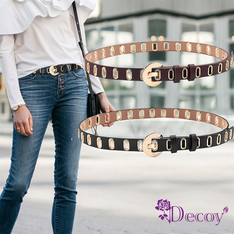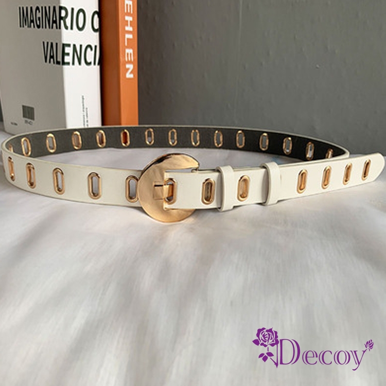 簡約中性全孔造型皮帶,橢圓設計全孔腰帶,