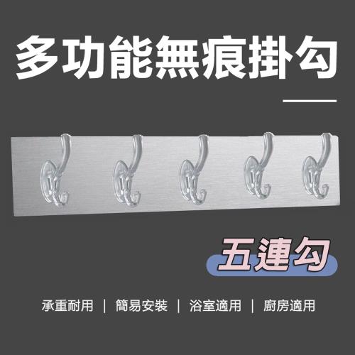 多功能廚房浴室無痕透明連排掛勾-五連勾