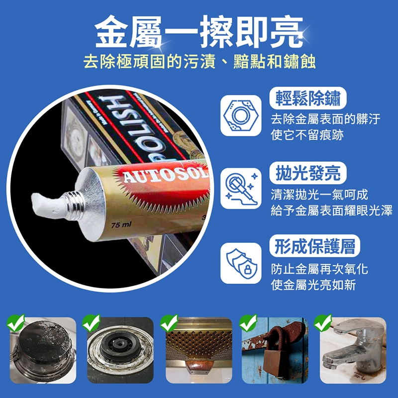 清潔拋光一氣呵成,恢復金屬表面耀眼光澤度