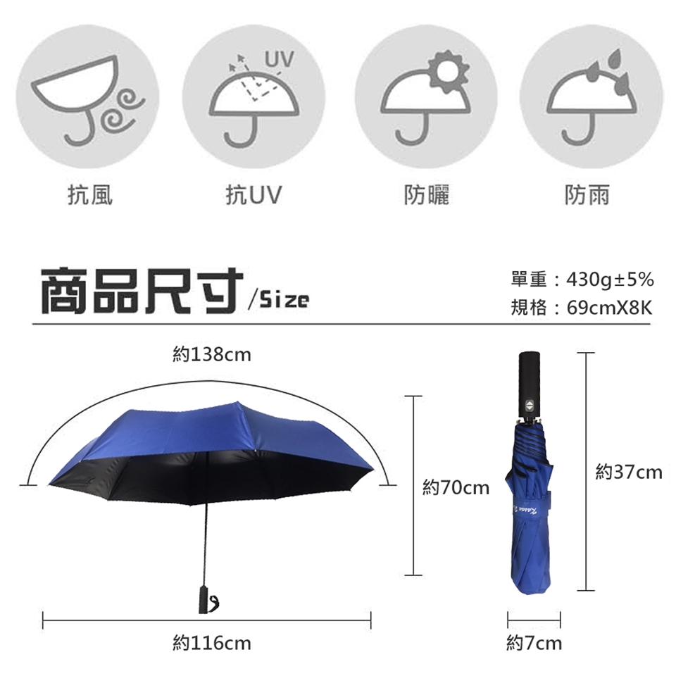 黑膠/色膠傘布屬於特殊傘布,初次使用均會產生傘布沾黏(此為正常現象),多次使用後即可改善。