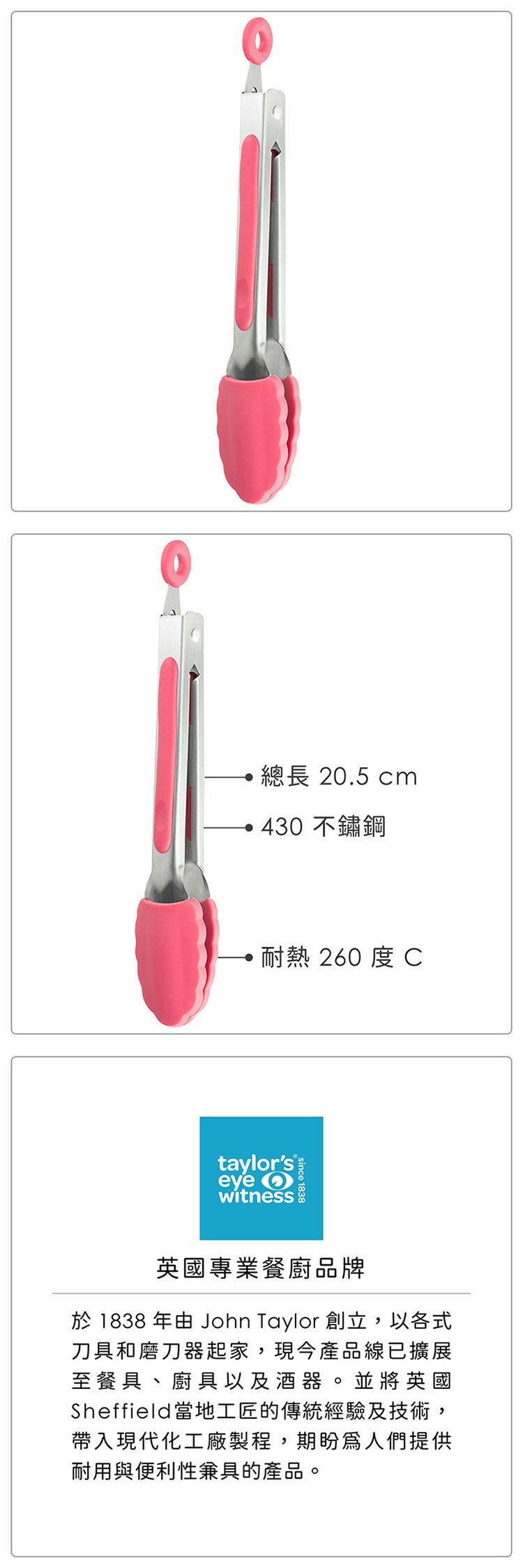 不論披薩、肉排、甜點、蔬菜沙拉,或保鮮罐內的食材,皆需使用餐夾方便夾取、分食。此款餐夾矽膠夾面適用不沾鍋具,搭配波浪爪夾可穩固夾取食材不易滑落;頂端特殊卡榫設計,可拉起快速收闔夾面,同時亦有吊掛孔設計收納時更省空間。