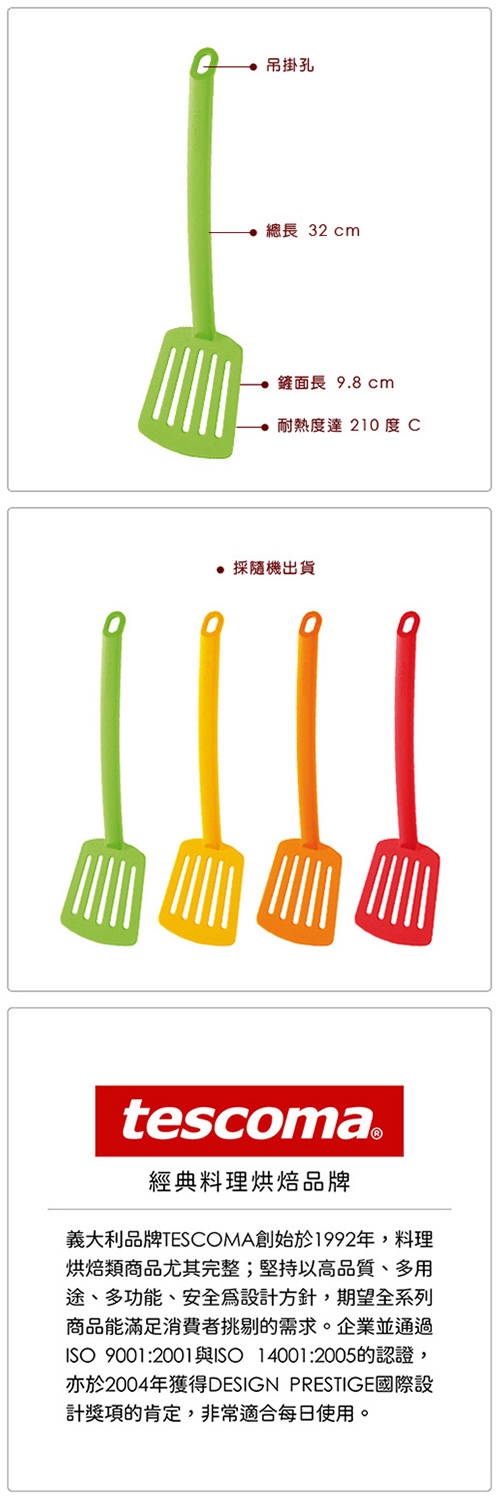 本商品一件入。烹煮各式肉類食材時,推薦您此款鍋鏟,藉由鏟面的漏孔減少油份的攝取。方型鏟面搭配濾孔設計,尤適合煎煮牛排、肉捲等多油脂食材,也適合台灣飲食習慣的熱炒。鏟面扁平光滑,方便您貼平鍋底且靈活翻炒;耐高溫尼龍製,適用不沾鍋具,可避免刮傷鍋具表面塗層;搭配好拿握的長柄設計,也可遠離火源避免熱氣燙傷。可吊掛收納省空間。