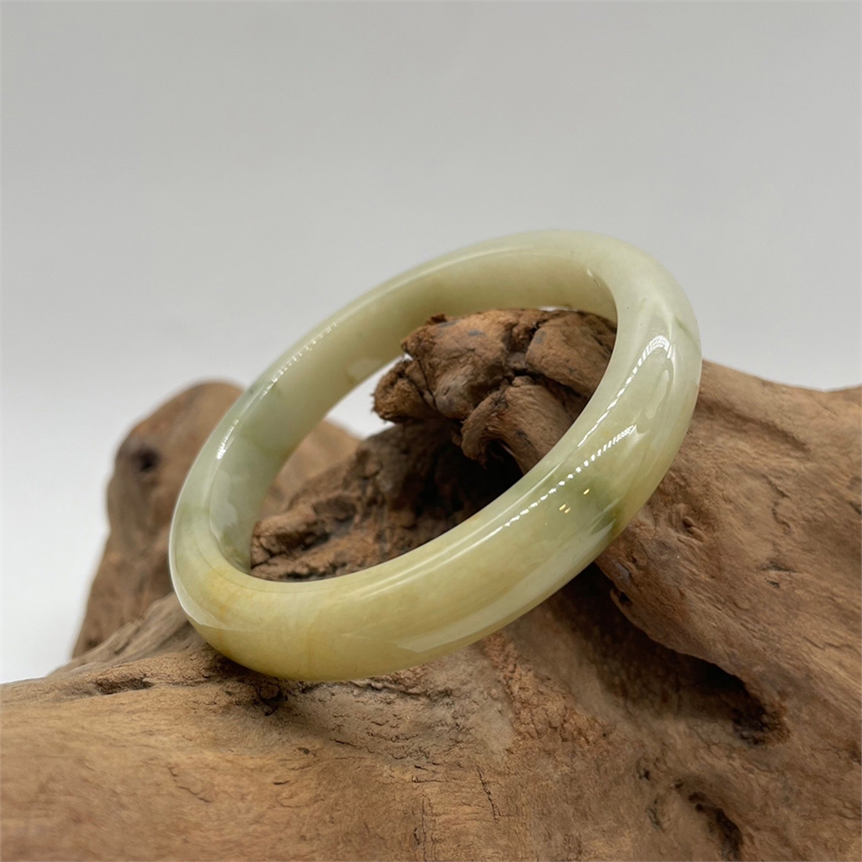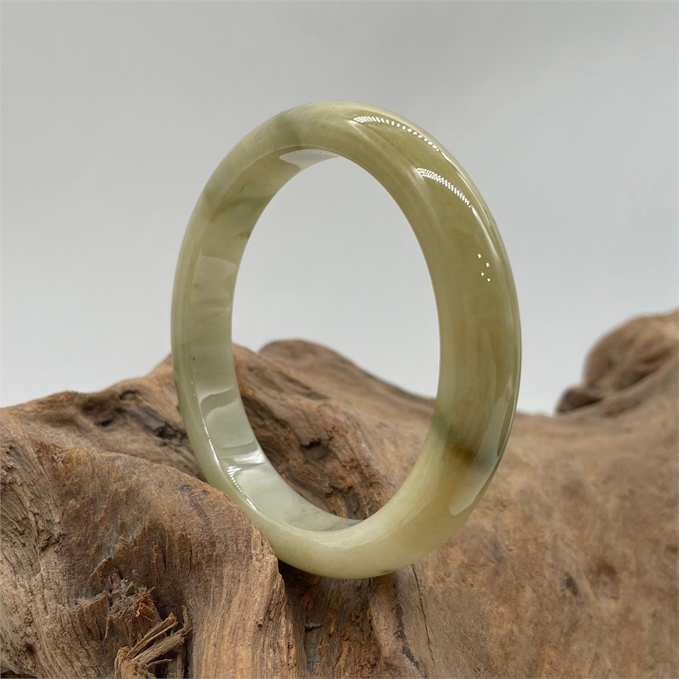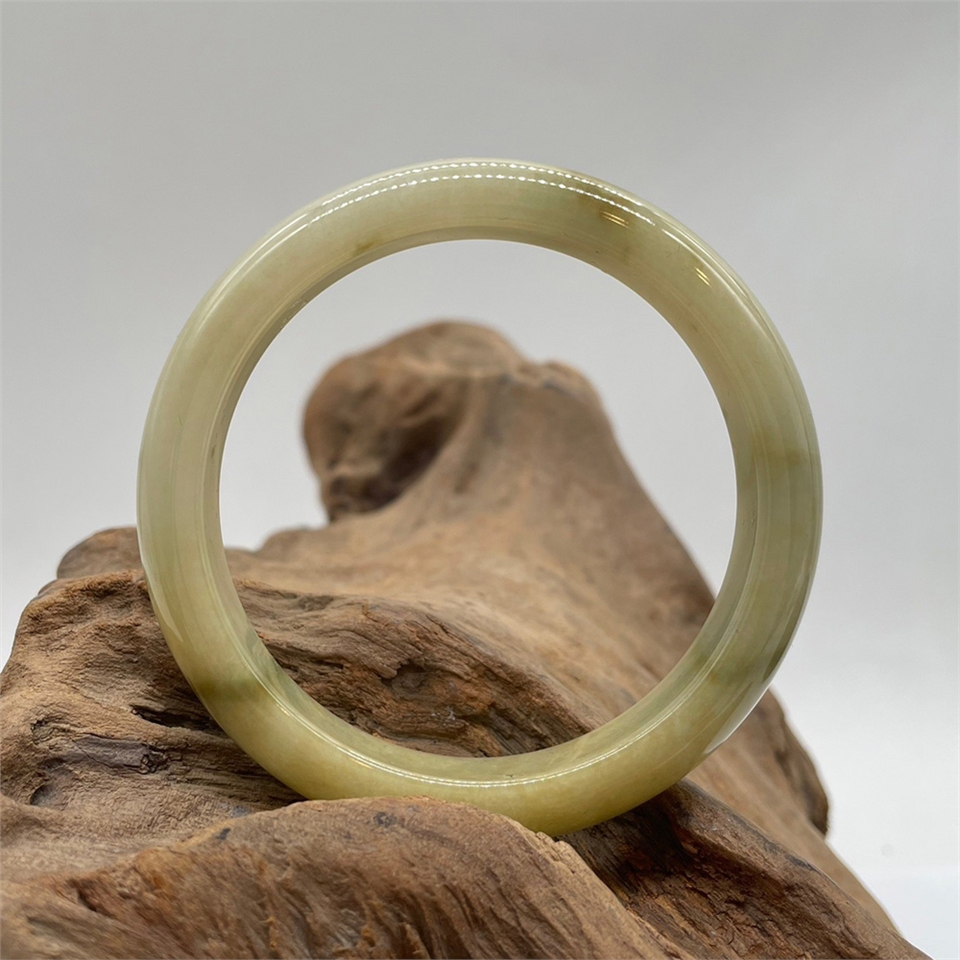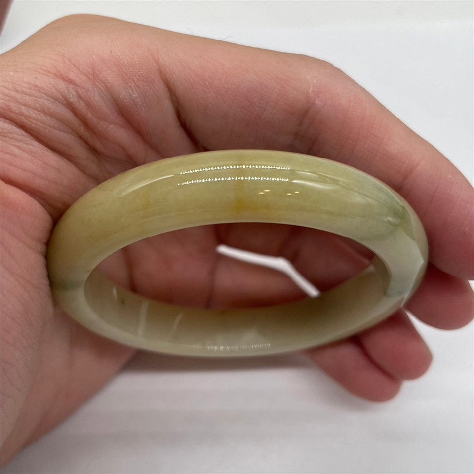 【肌容雪】天然緬甸A貨糯冰黃飄花翡翠手鐲 編號321 (鐲寬55.1mm #18號)