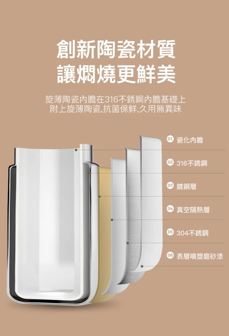 杯體:旋薄陶瓷、316不銹鋼