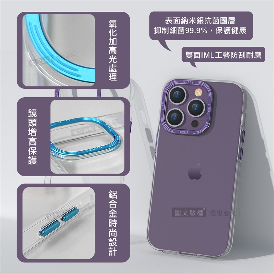 鋁合金防護 透明手機殼 保護殼(紫色)