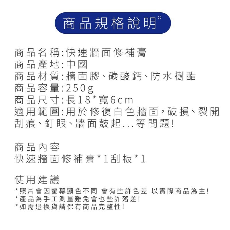 ☑適用:牆壁起泡、脫落、裂開、釘眼洞孔、塗鴉小廣告、牆面劃痕