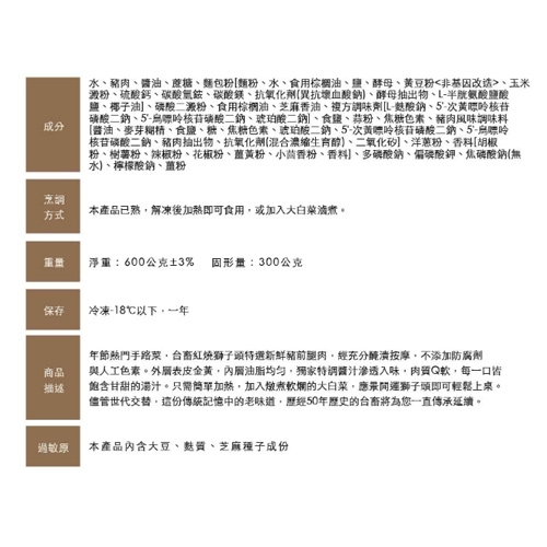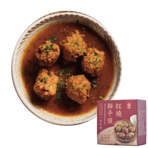 ★年節熱門手路菜,台畜紅燒獅子頭特選新鮮豬前腿肉,經充分醃漬按摩