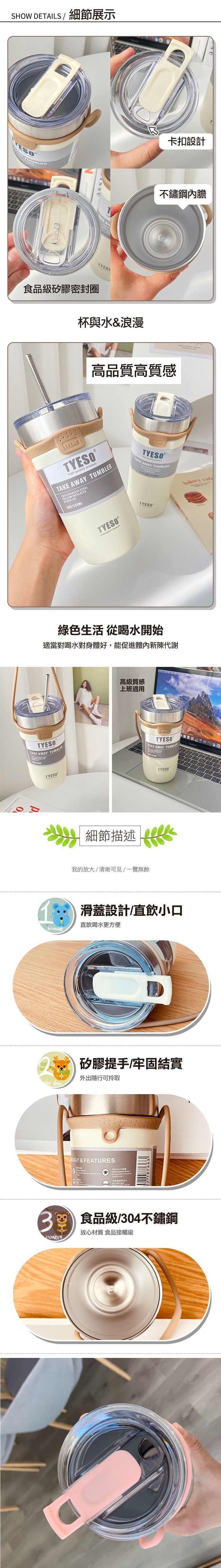 不鏽鋼材质,杯身底部防滑耐磨耐用,矽膠提繩,外出攜帶方便,滑蓋設計,方便飲用,不易溢出,杯口寬口設計,裝水、清洗都方便,食品級PP蓋,加厚止漏膠圈,緊密上蓋