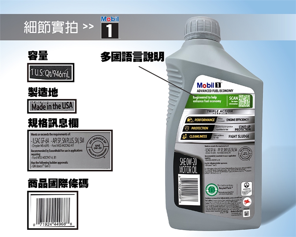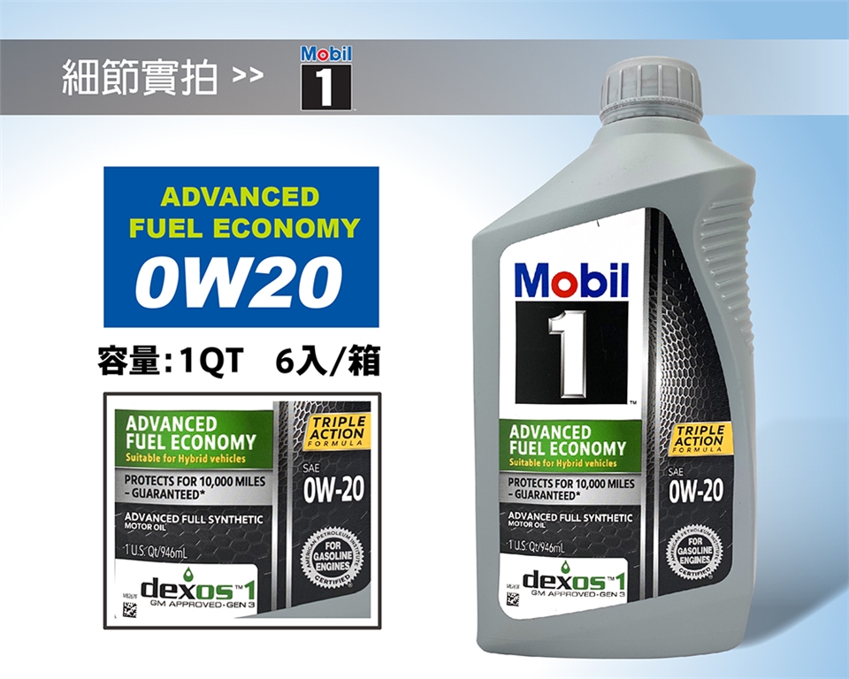 Mobil 1™ 0W-20 Advanced Fuel Economy是一款專為現代節能引擎設計的頂級全合成機油。採用先進的低黏度配方,旨在提供卓越的引擎防護同時極大化燃油經濟性。此款機油具備優異的熱穩定性,最長可支持達 16,000 公里的換油間隔(視車況與駕駛習慣而定)。其出色的低溫流動性確保了冷啟動時的即時保護,是混合動力車(Hybrid)及追求極致省油表現車主的最佳選擇。