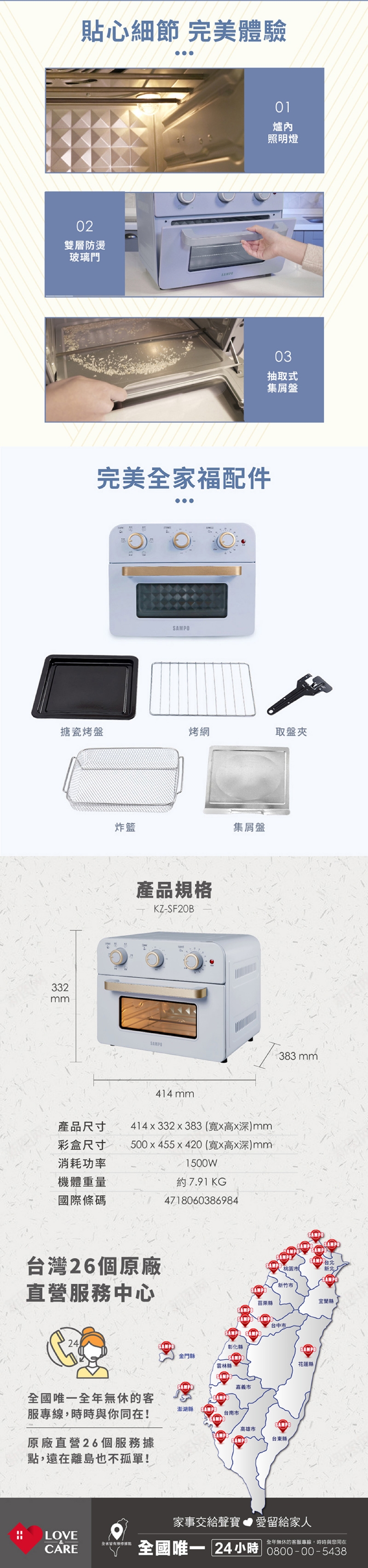 ◆配件:搪瓷烤盤、烤網、炸籃、集屑盤、取盤夾。