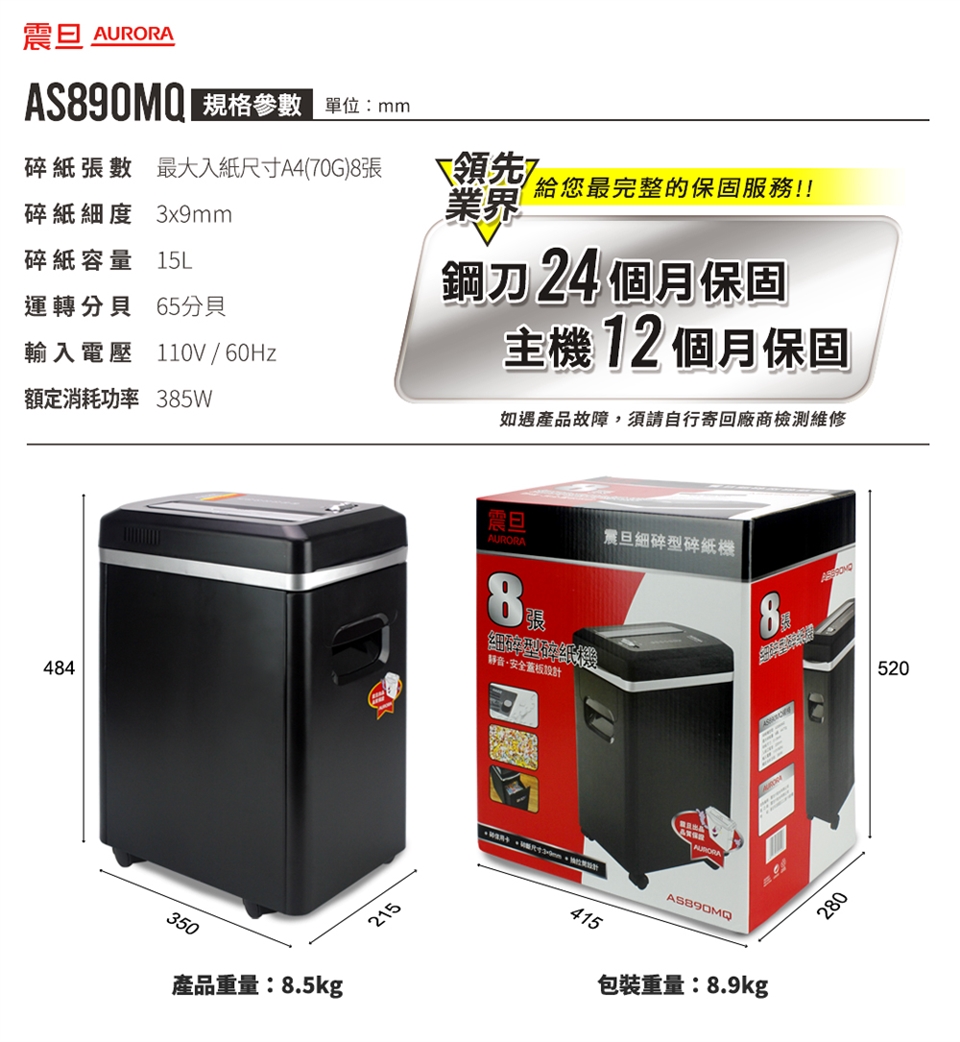 ※商品於出廠前每台都會經過品檢測試,裁刀上會有潤滑油,裁刀及集紙桶內皆會有少許測試用紙屑,皆為全新品之正常現象。