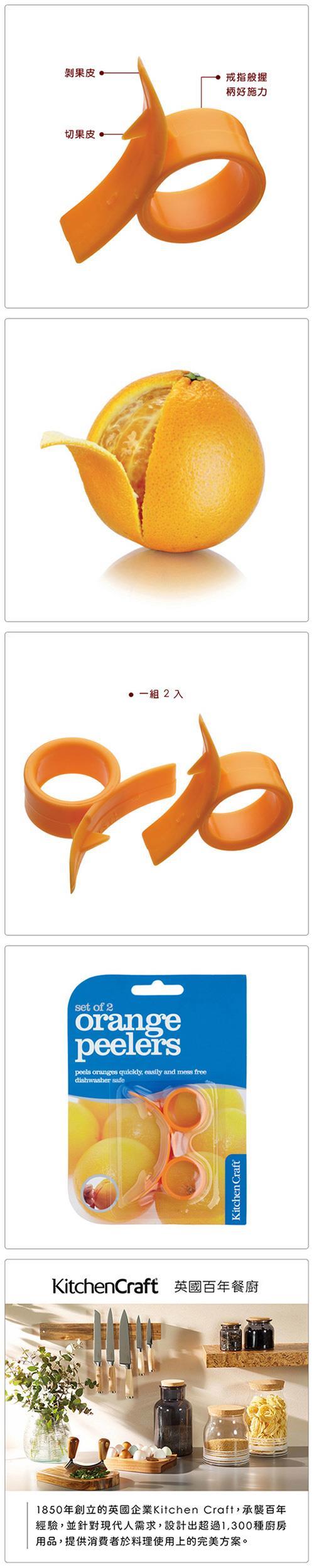 本商品一組 2 件入,適用柑橘柳丁。果肉軟硬與熟度的不同,可能會影響使用效果;適用洗碗機。處理柑橘類水果皮時,最怕因厚薄度不同的果皮,在手撥的過程中損害到果肉。此款削皮器只需簡單的幾個步驟,即可迅速且完美地削皮;戒指型手握處方便指頭施力、也不滑手。