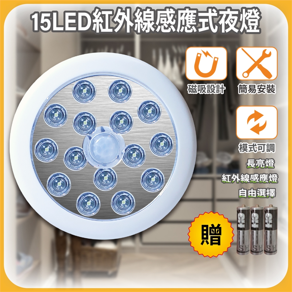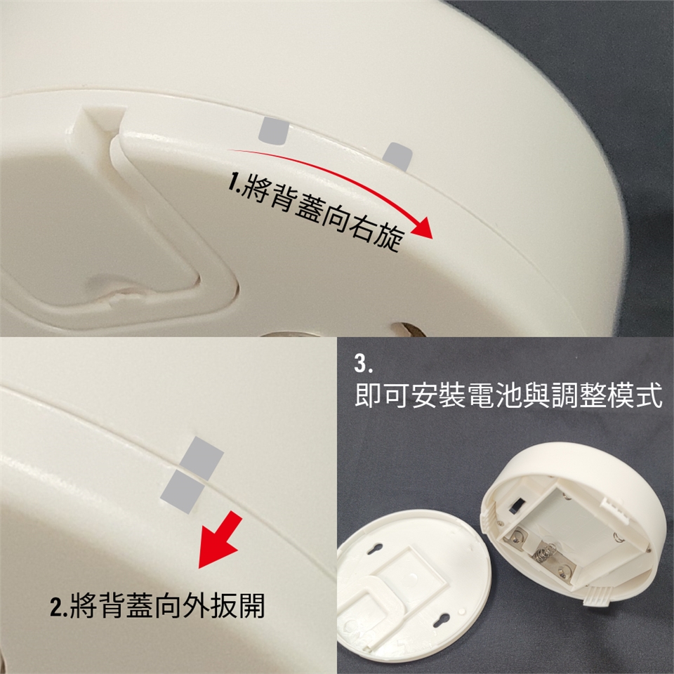 - 紅外線人體感應夜燈,直接裝入電池即可使用。