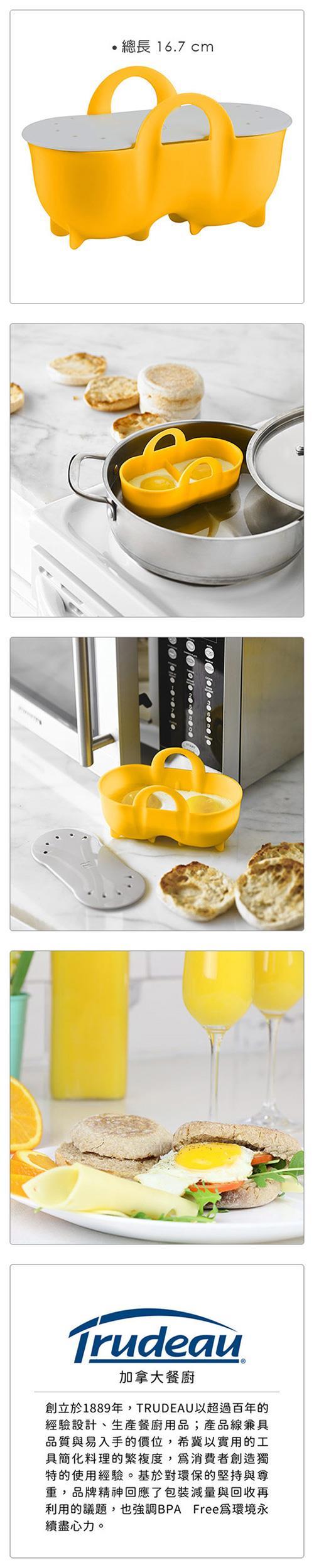 早午餐自製滑嫩的水波蛋、半熟蛋,可試試此款煮蛋器;雙格設計一次可製作兩份水波蛋,搭配矽膠材質好脫模。將生雞蛋破殼倒入煮蛋器後擺上蓋子,放入約 2 公分高的滾水中 (搭配小火),煮約 5 分鐘即可輕鬆完成水波蛋。最後可灑點鹽、胡椒作些許調味,享用美味滑嫩的水波蛋。
