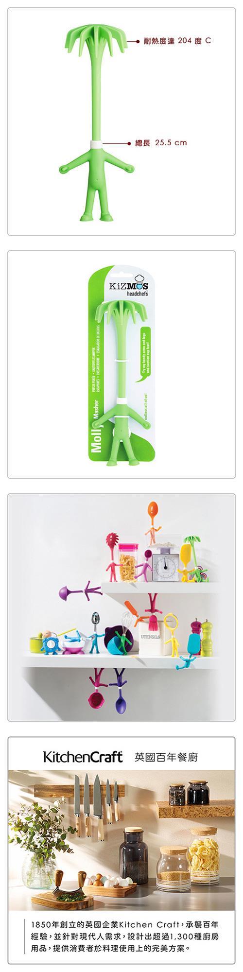 本商品一件入、耐熱度 204 度C,請遠離直接火源、料理時請勿長時間將握柄靠至鍋緣,可能受損或高溫燙傷;適用不沾鍋、洗碗機,並請留意此非玩具,幼小孩童使用時請由成年人陪伴。Kizmos 為充滿活力的花卉風格系列,利用鮮豔的色彩與豐富趣味的設計,像是把整座花園帶進廚房;料理時可愛的器具可以讓您心情更愉悅,試試此款立體造型的搗泥器,富彈性的匙面與小手,可輔助您拿握更穩固、與壓碎搗泥南瓜、馬鈴薯時更得心應手。可愛的造型卻不失實用度。較長的握柄,非常適合搭配較深的鍋具使用。