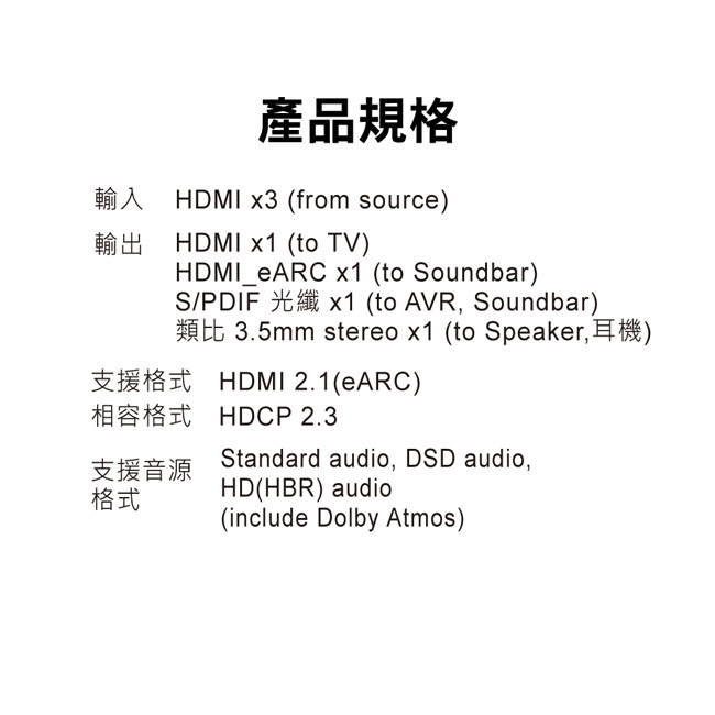 ◎支援音源格式:Standard audio, DSD audio, HD(HBR) audio (include Dolby Atmos)