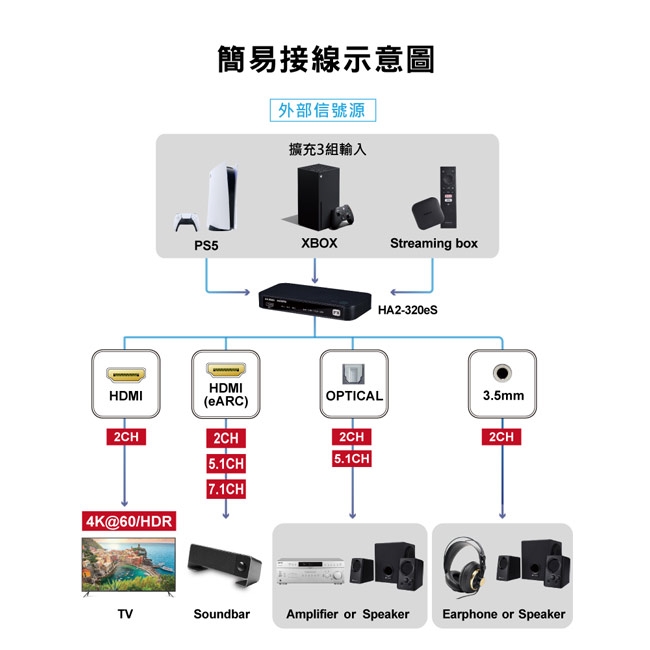 ◎讓eARC Soundbar享受多訊源帶來的7.1CH音樂
