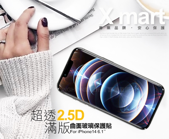 Xmart for iPhone 14 6.1 超透滿版 2.5D 鋼化玻璃貼-黑