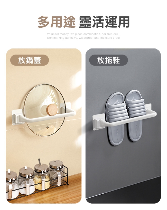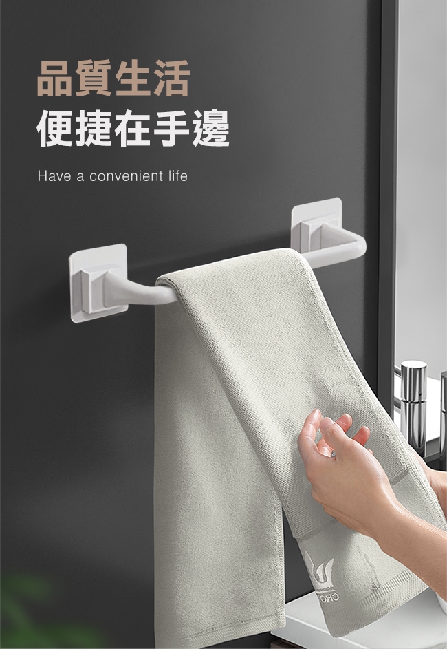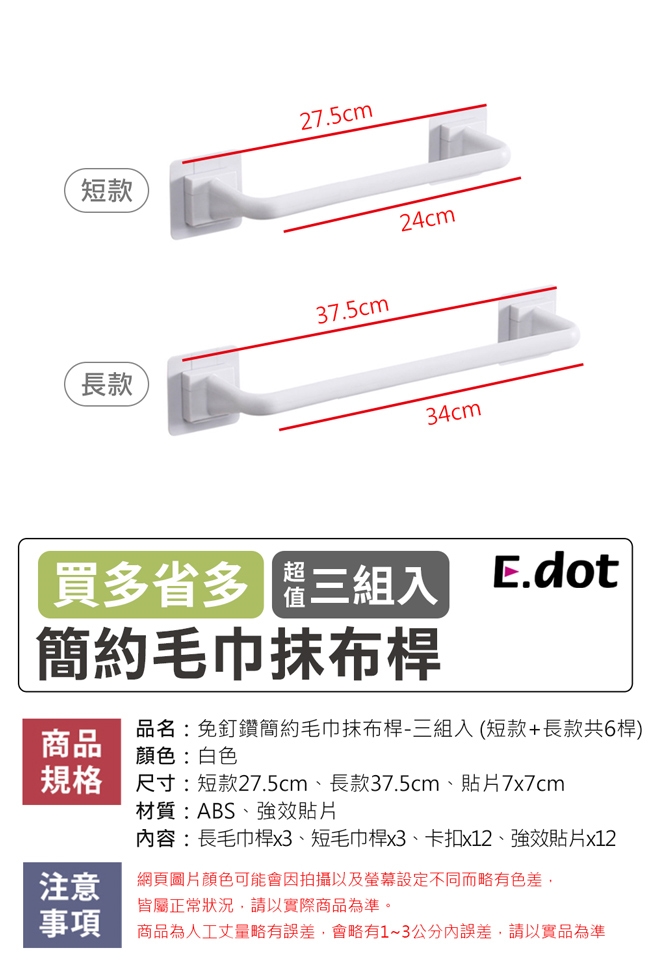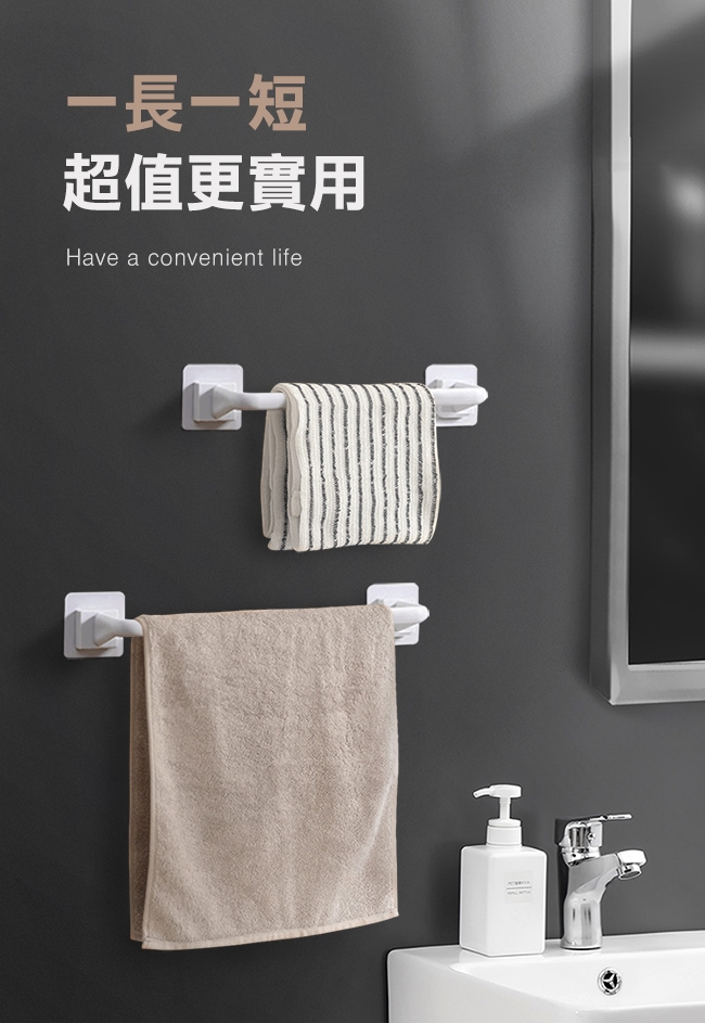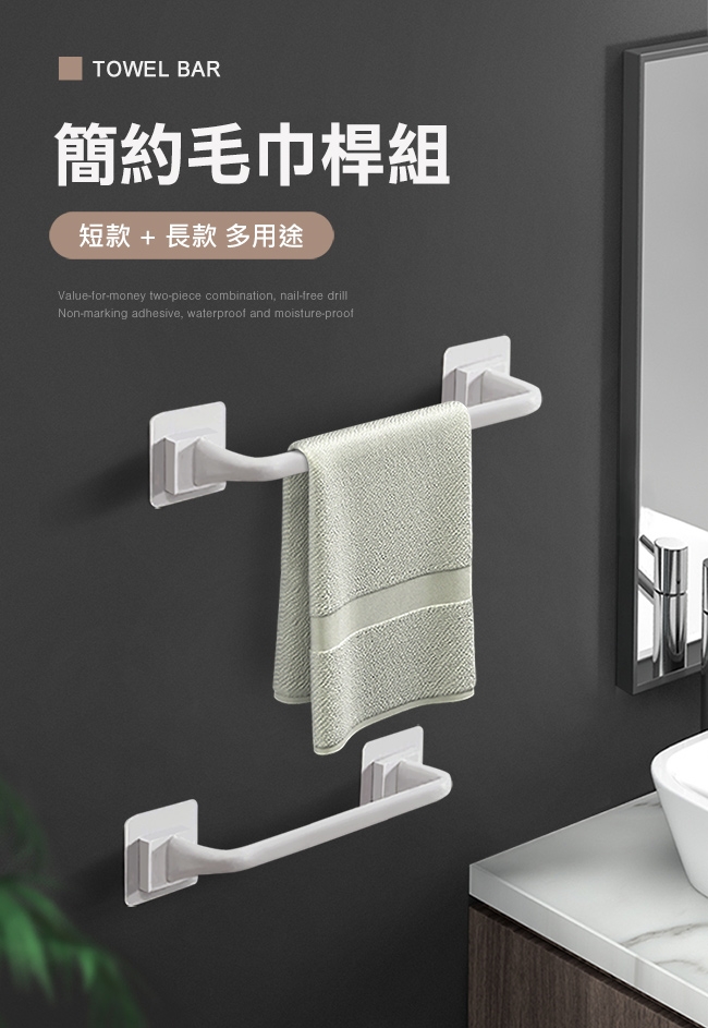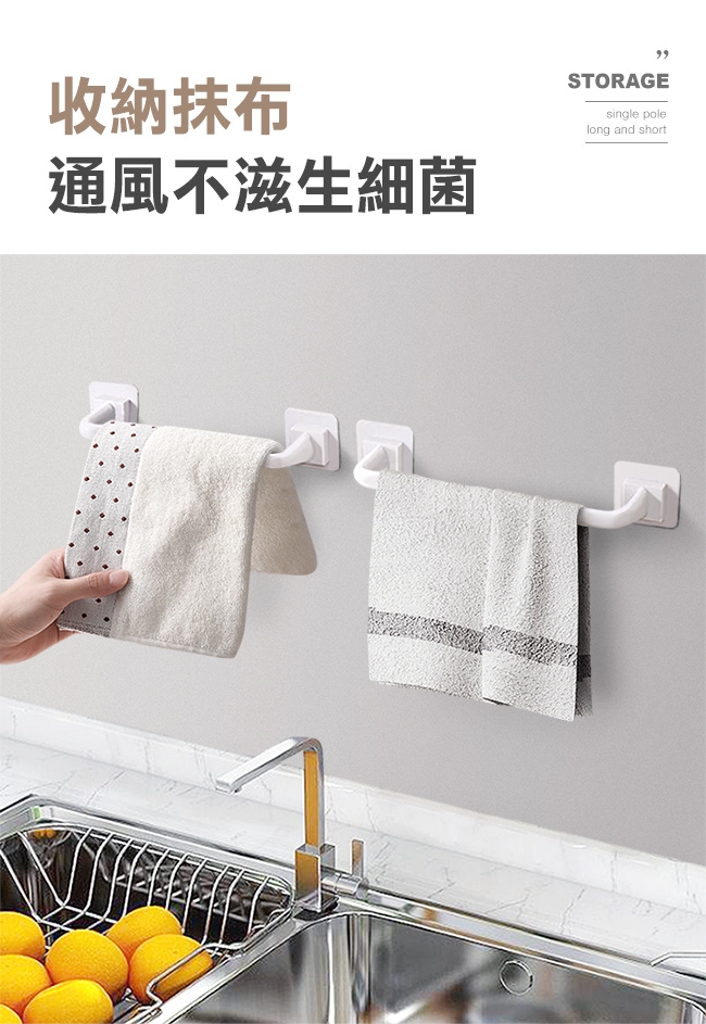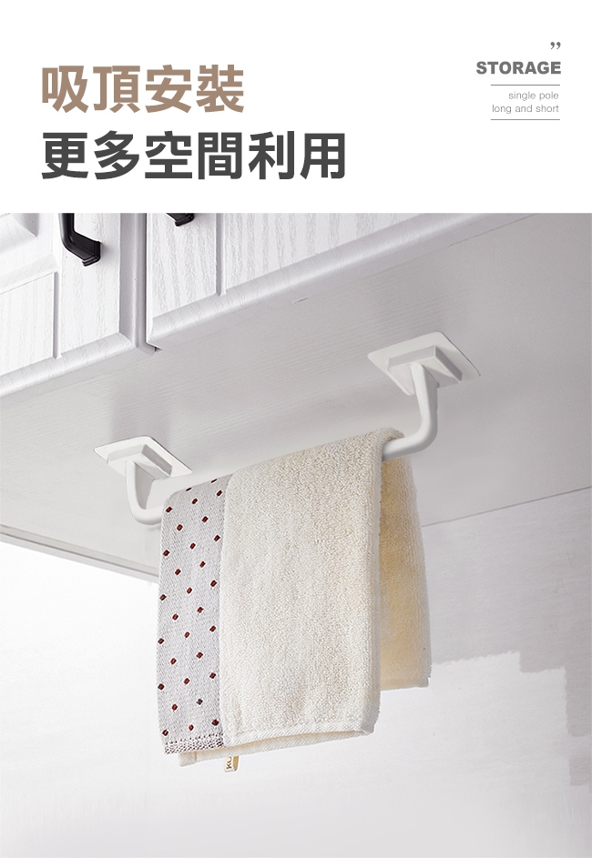 ◆ 品名:免釘鑽簡約毛巾抹布桿-三組入 (短款+長款共6桿)