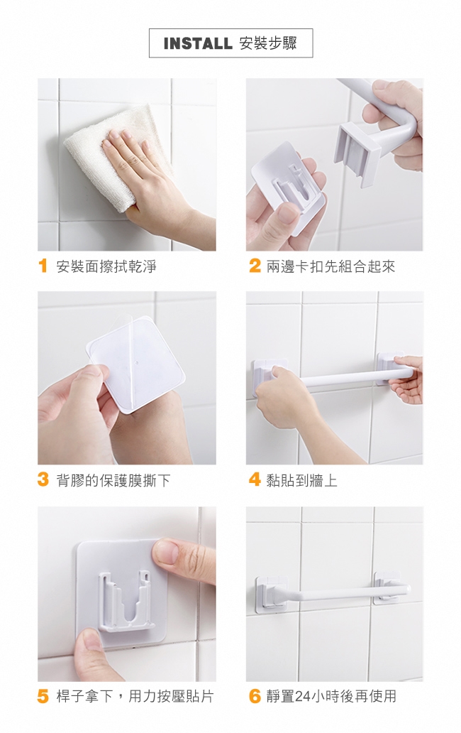 ◆ 內容:長毛巾桿x3、短毛巾桿x3、卡扣x12、強效貼片x12